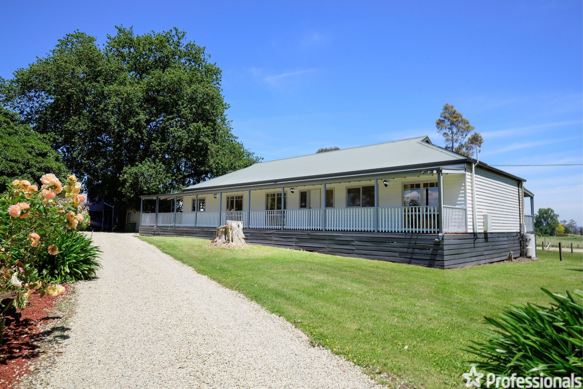 Looking for the ultimate country lifestyle in a quality location with privacy on over 5 Acres, stunning views and loads of shedding? Well here it is! This property has plenty of country charm, local history and is set amongst other prestigious properties. There are many established trees, fruit trees, rose gardens and lawn areas to run around on, plus loads of space to keep chooks, ducks, dogs and ponies. The large ranch style family home has room for everyone, veranda's to three sides and big windows to let the natural light and beautiful surroundings in. The home has plenty of character with high ceilings, wide hallways, spotted gum floorboards, wood heating, a ducted vacuum system, evaporative cooling and gas ducted heating. The centrally located country kitchen has loads of features with tons of cupboard space, breakfast bar, dishwasher, stainless steel oven and electric cooking. The floorplan incorporates a meals area, large lounge room, a further family room or rumpus room and four good sized bedrooms. The main bedroom has a generous walk in robe and modern ensuite and there is also a centrally located family bathroom with a timber vanity, shower and claw foot bath. Further features include a separate toilet, large laundry and plenty of storage throughout the home. Outside offers an entertaining deck ideal for bbq's, an eight person spa to relax in, established gardens with an automated sprinkler system and loads of shedding. There is a large colorbond 9m x 10m barn, machinery shed which could easily be converted into stables, tackroom, carport, float parking and an enormous workshop with roller door, concrete floor and power. This area also has a home office upstairs with power, a split system, tv antenna and security system. For the horse lovers there is a large arena, tie up area and fenced paddocks. There is also a small dam, two road frontages and even a veggie patch. For your chance to live the country life but still be close to everything please call 5967 1800. You won't be disappointed.