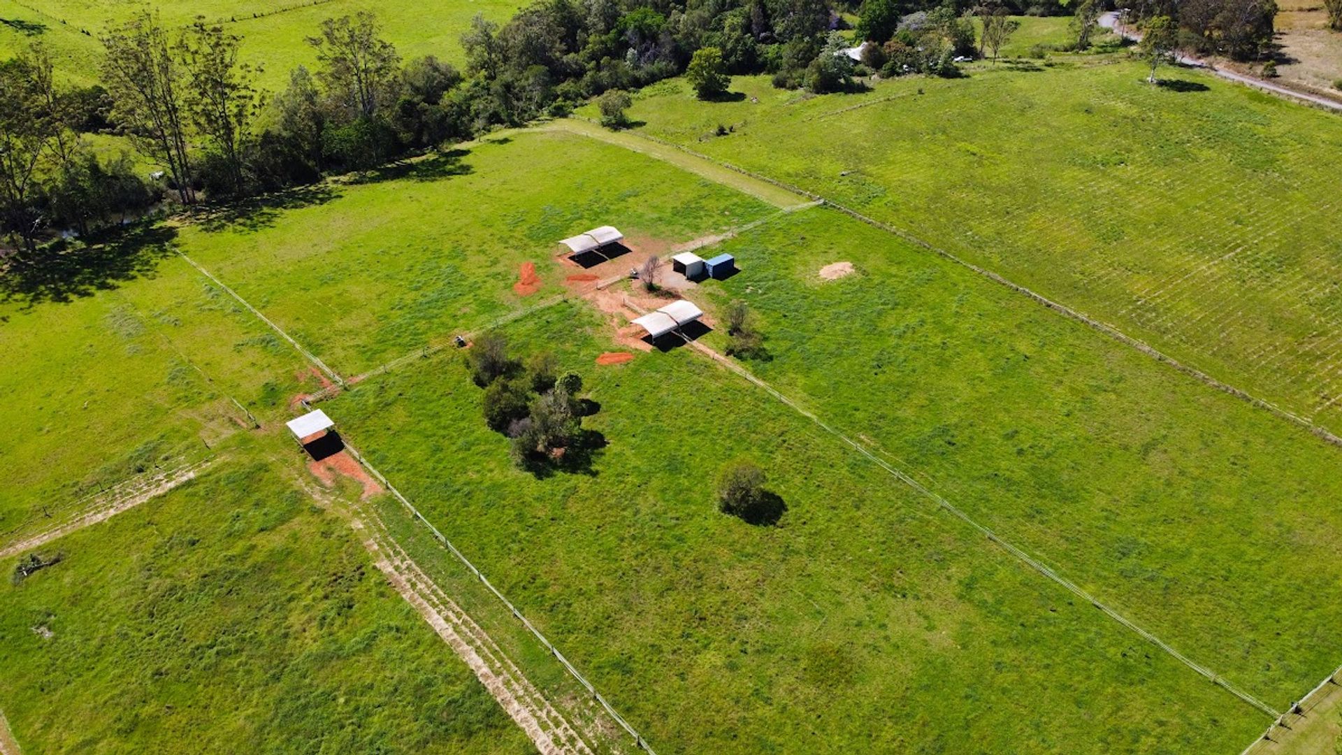 • Paddocks are fenced for horses currently with electric fence tape and have 5 stock shelters, storage container and 8 gravity fed water troughs.