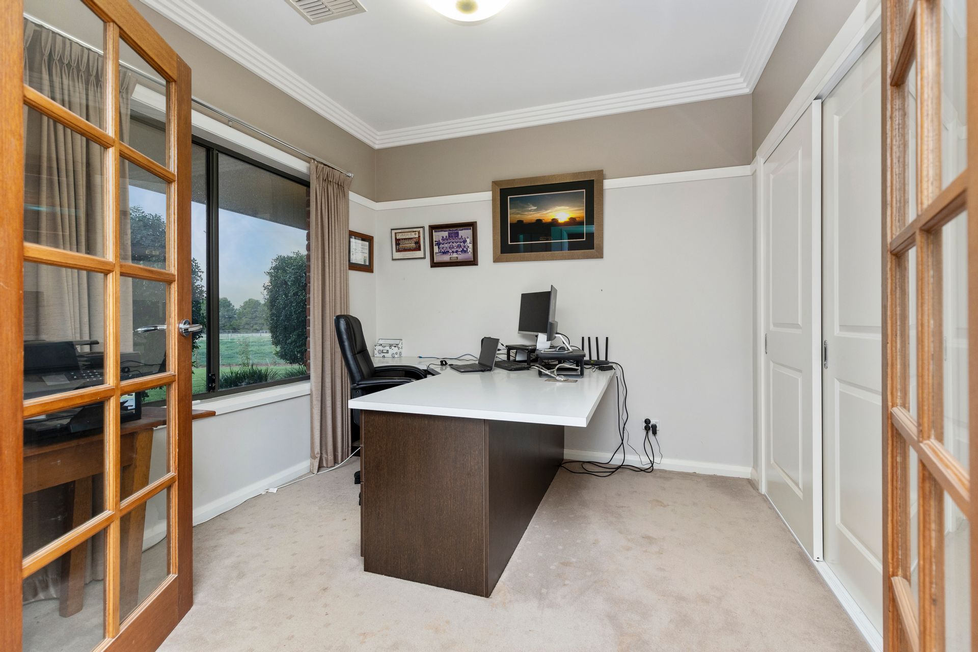 Accommodating the family with a premium degree of comfort and privacy, this superb home reveals style and charm. Established within a 9* acre landholding, this unique property is located only minutes from the regional Airport and CBD of Wagga Wagga. The electric gated entrance guides you through a private tree lined facade to announce features that are all enveloped in sublime landscaping. The brick master built residence comprises 4 ample bedrooms, large ensuite and walk in robe to master, genuine office, modern kitchen with expansive living areas including private theatre room & rumpus. Alfresco areas, with outdoor kitchen & bbq entertaining area overlooking a salt water pool compliments the property.