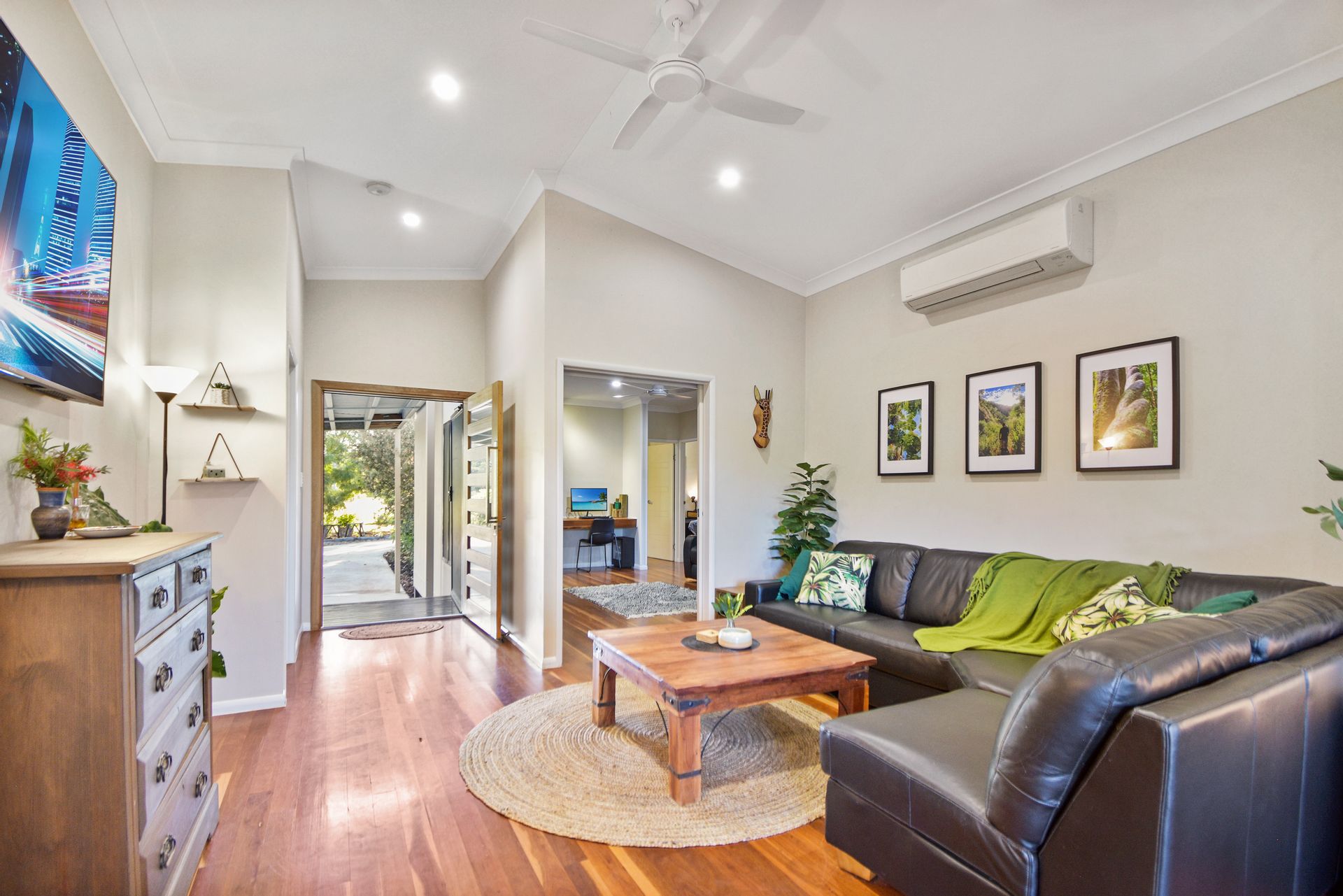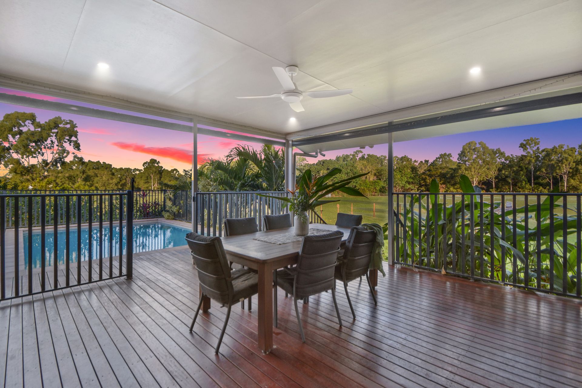 Aaahhhh this is living Barry! There's nothing better than a huge deck to entertain alongside your concrete swimming pool… unless it's set out amongst beautiful tropical gardens with the nearest neighbor 200m away. You may never want to share this idyllic space with anyone! In which case- don't invite them over because they will surely be back every weekend. Thoughtful touches add to the awesome outdoor entertaining potential. The alfresco patio features automated screens which roll down to keep your flying friends out but don't hinder the gorgeous views of the acreage.