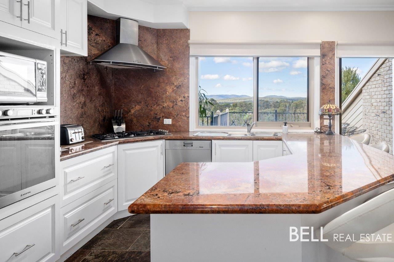 No expense was spared on quality fixtures and fittings throughout the home including slate floors, lush carpets, stylish window coverings, and granite bench tops. The modern white timber kitchen has stainless steel appliances, plenty of preparation space, a large pantry, and outstanding views of the rolling foothills surrounding this home.