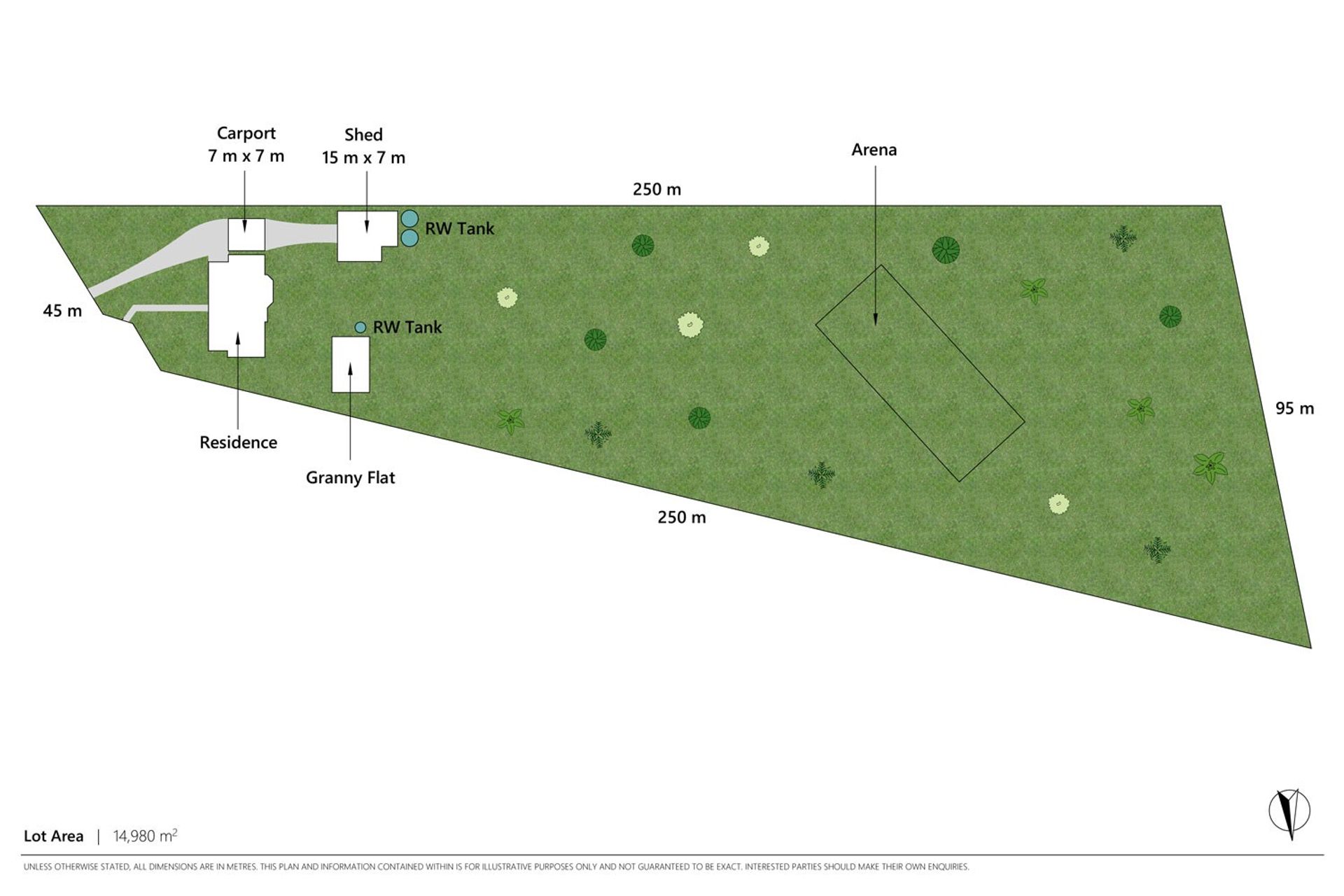 • Shed (15m x 7m) with power, 3 x roller doors, bathroom facilities, side awning, stable area and space to accommodate a horse float