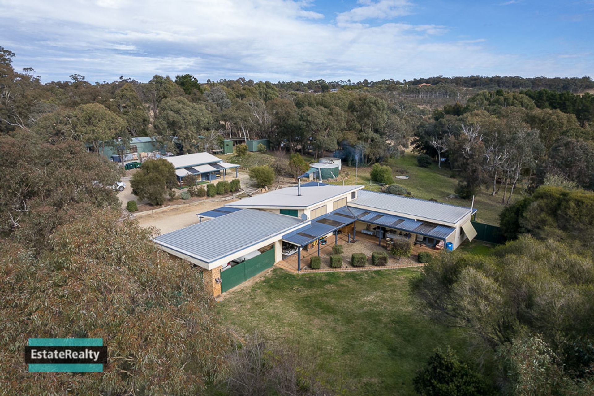 The main residence is a well-designed solar active and passive home. Plenty of winter sunlight filters through highlight windows facing the north directly into the living and kitchen area, while in the summer months large eaves shade the living spaces making this a comfortable and efficient home all year round.