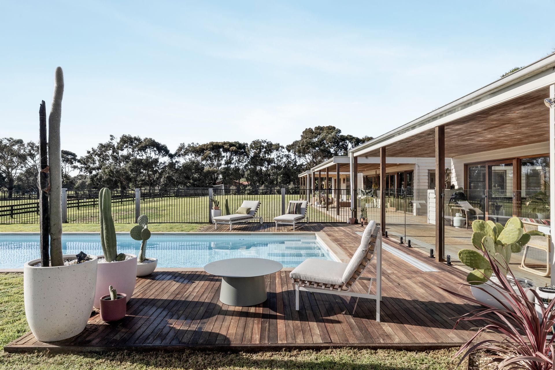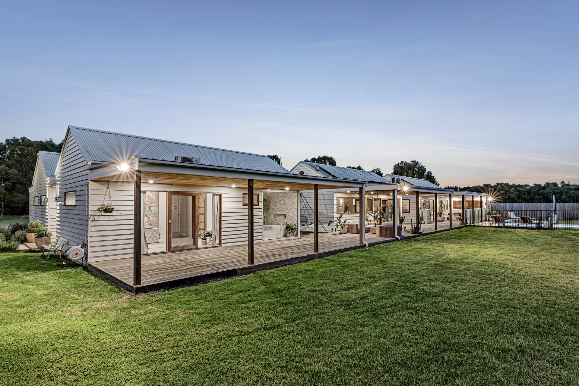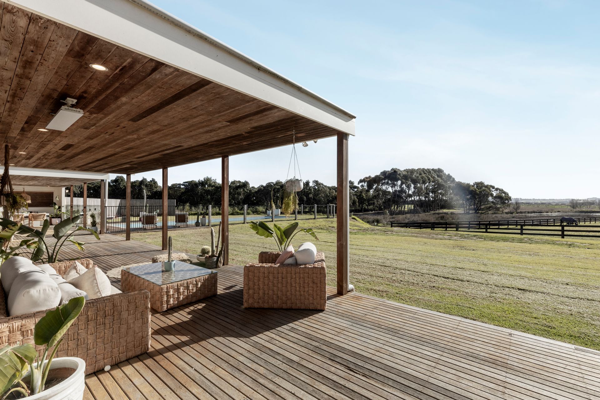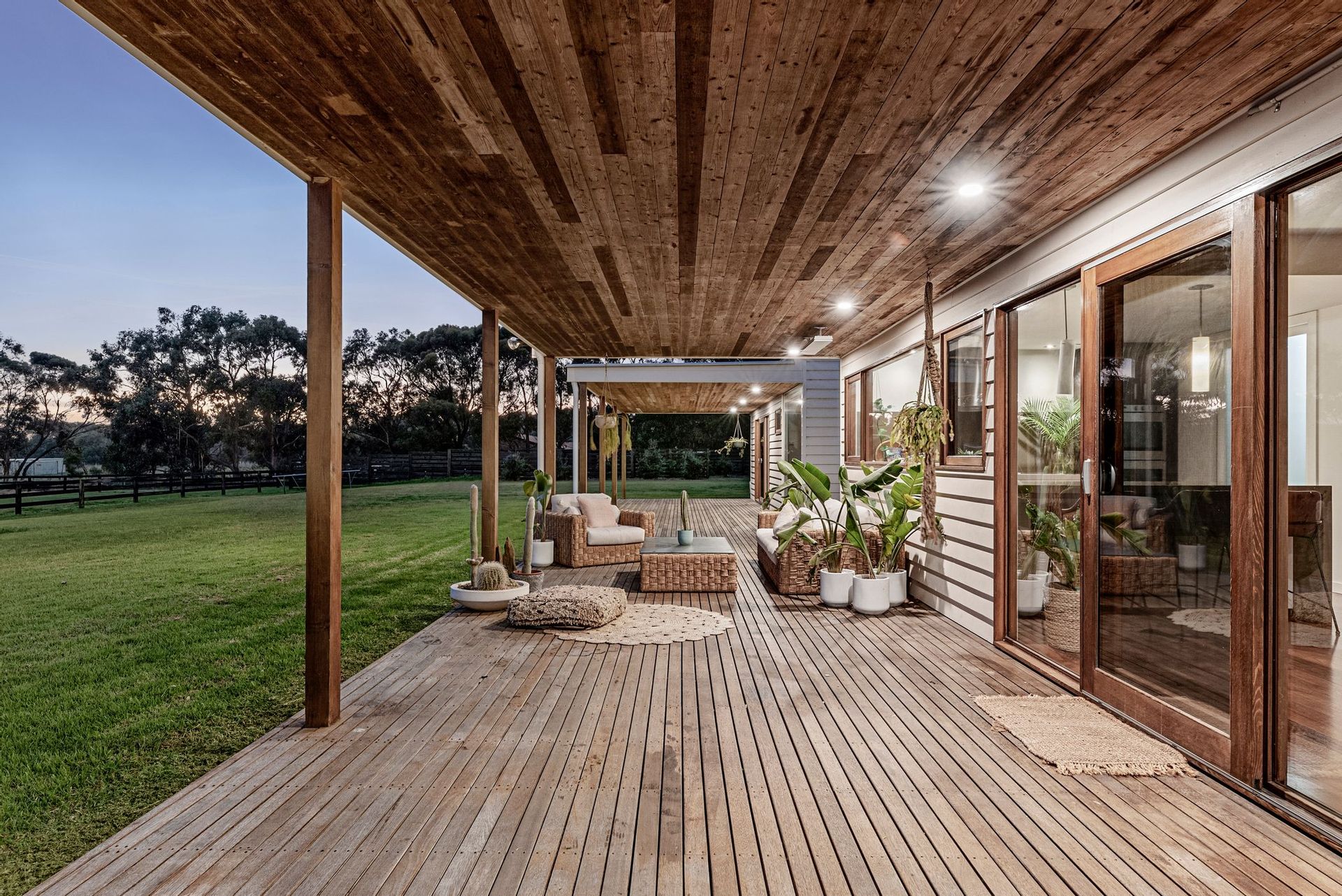 Outdoor- solar heated pool, beautifully situated among grounds sprinkled with peppercorn, olive & native trees, an extensive 33m x 4m deck, alfresco with built in bench seating, downlights, floor feature lights in the entrance, clothesline, veggie patches, stables & shed with additional car port