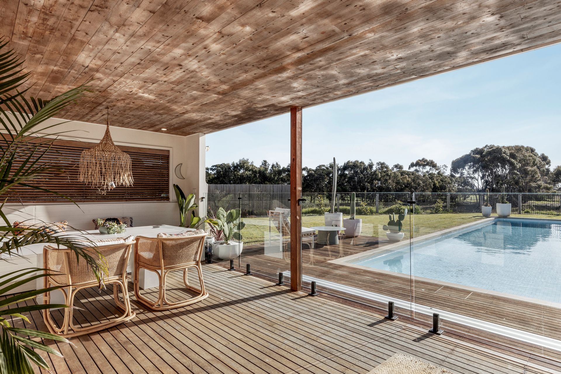 Second living- built in timber look TV unit, wooden Venetian blinds, split system heating & cooling, access to outdoor entertaining area & pool, downlights