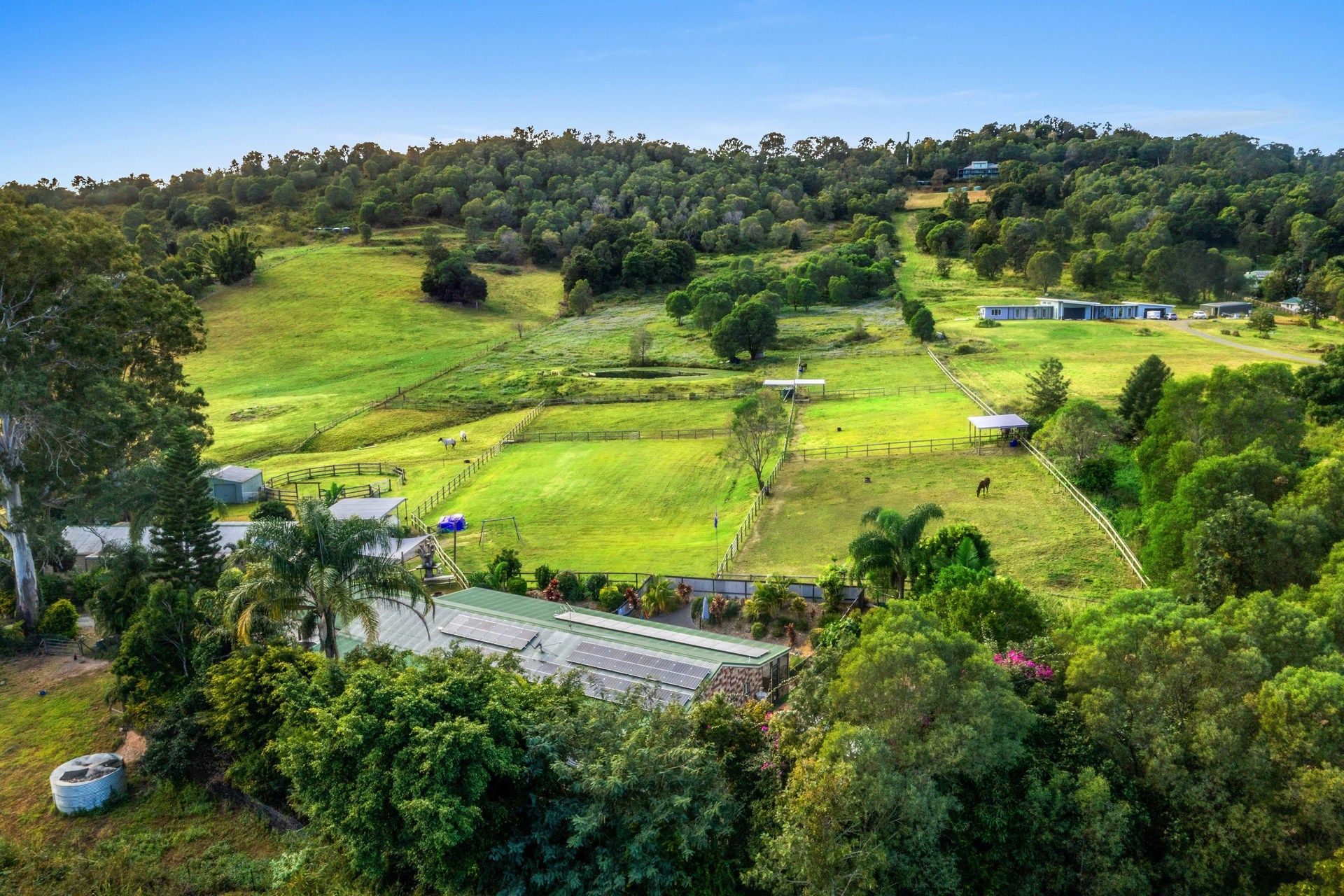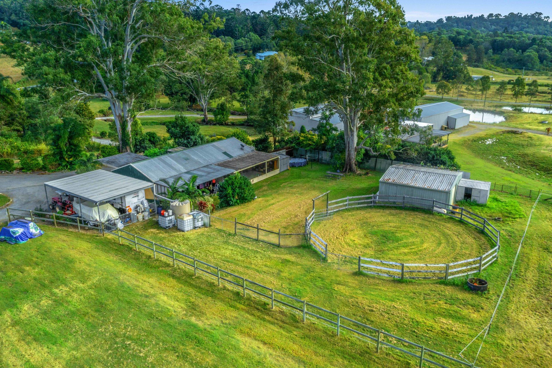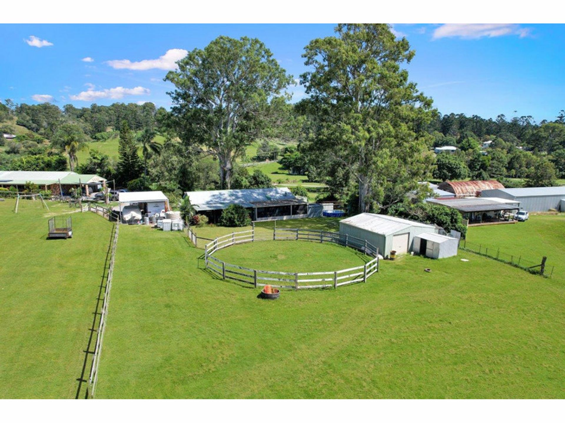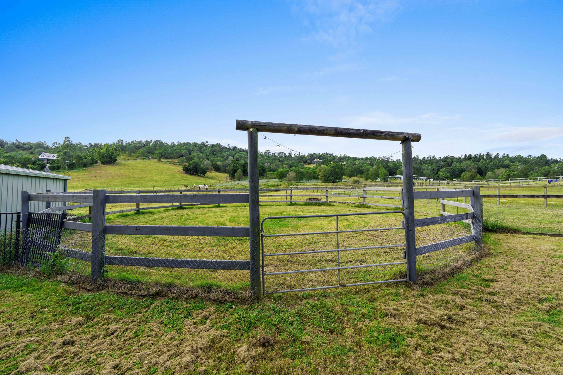 4 spelling paddocks with shelters Show jumping/dressage arena Timber double rails on all equine fencing 15m Round yard