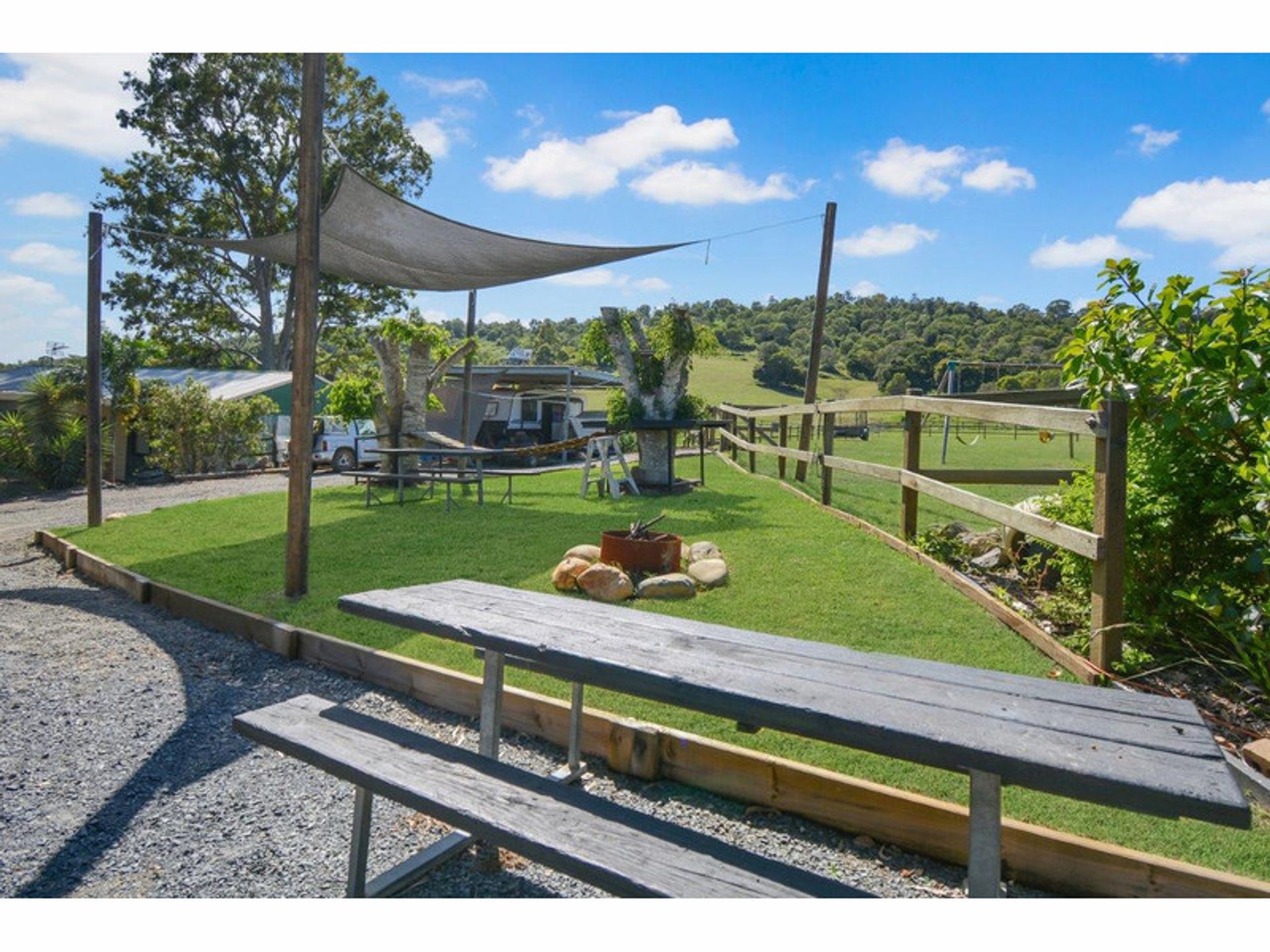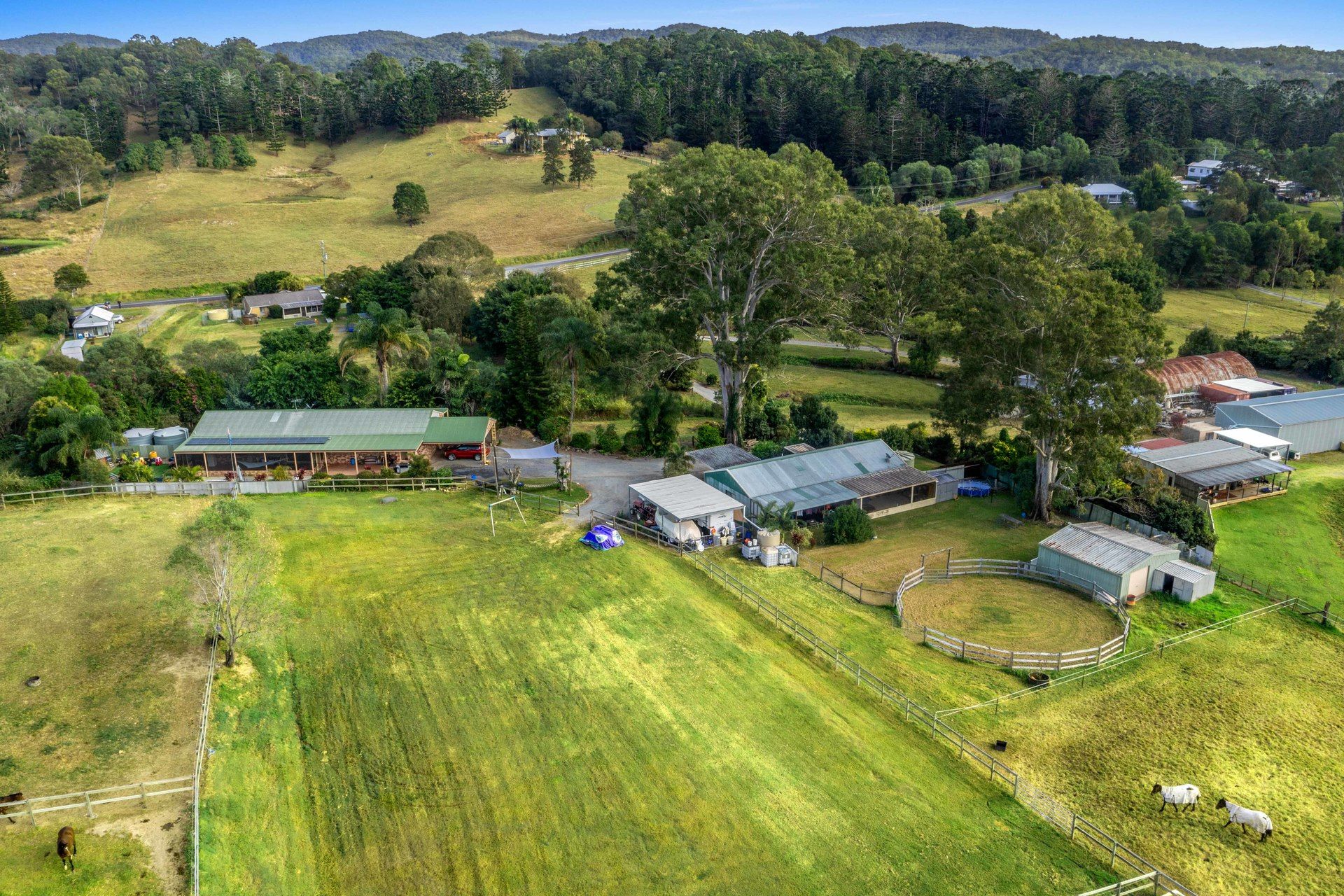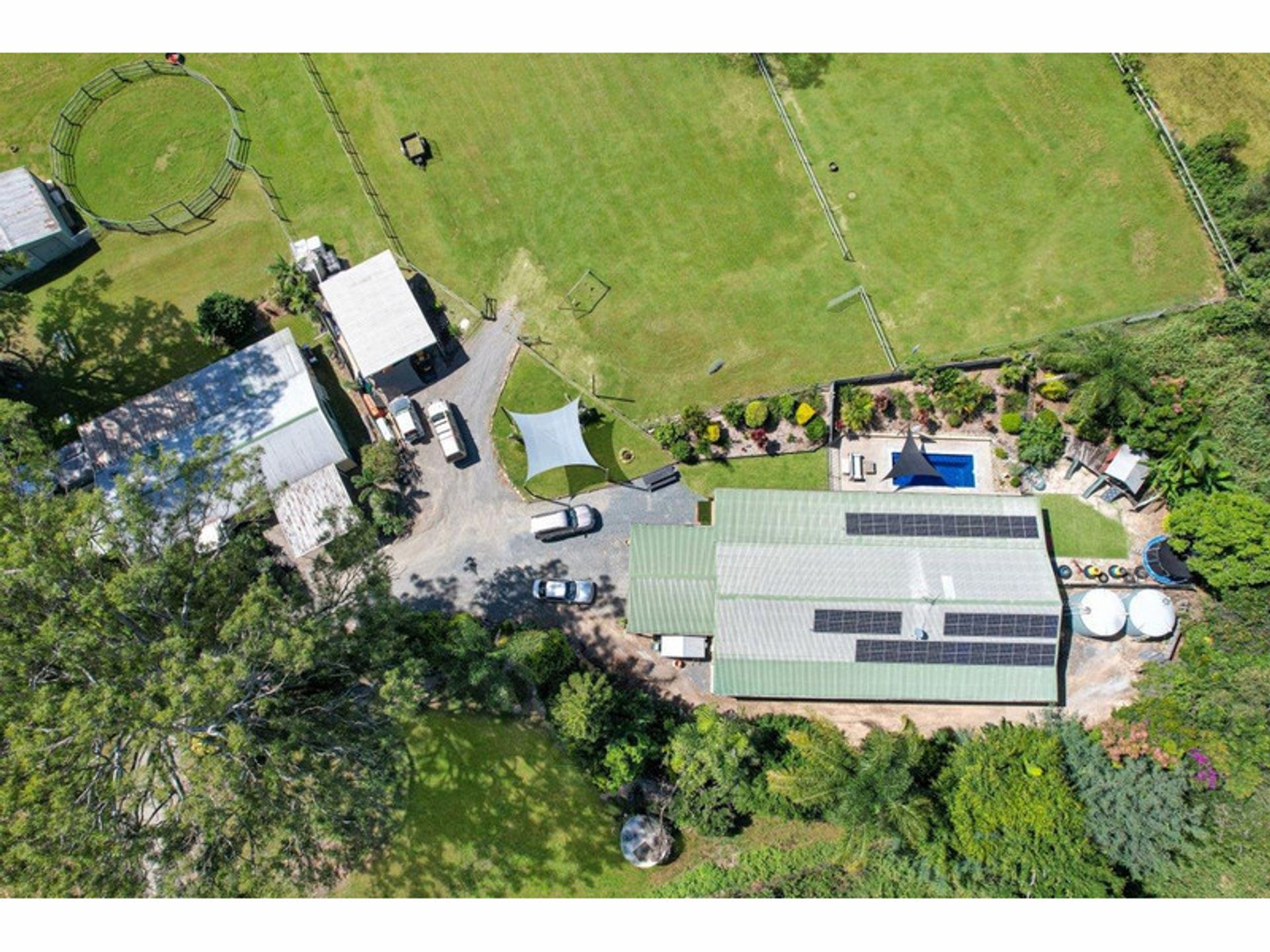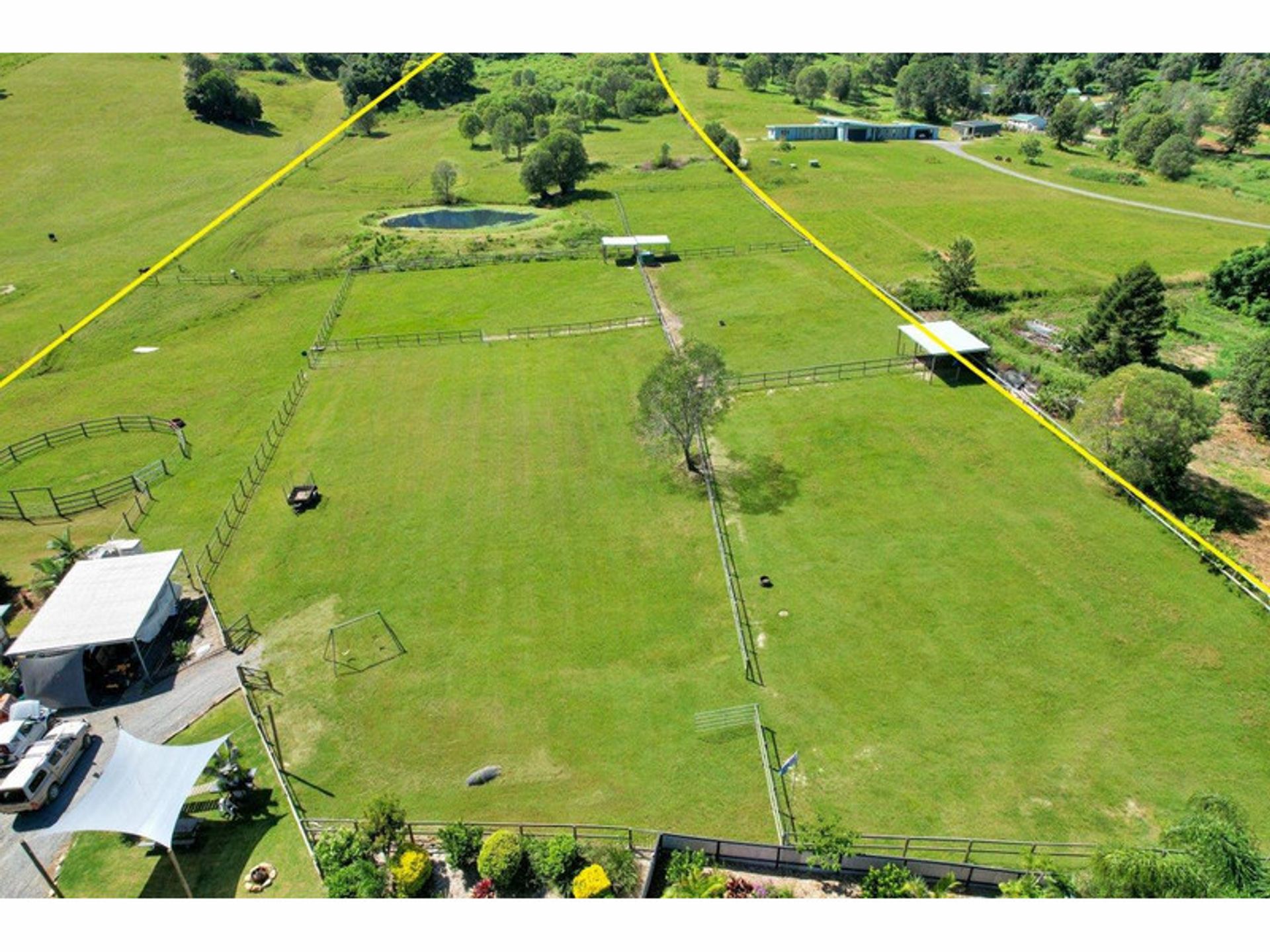 4 spelling paddocks with shelters Show jumping/dressage arena Timber double rails on all equine fencing 15m Round yard
