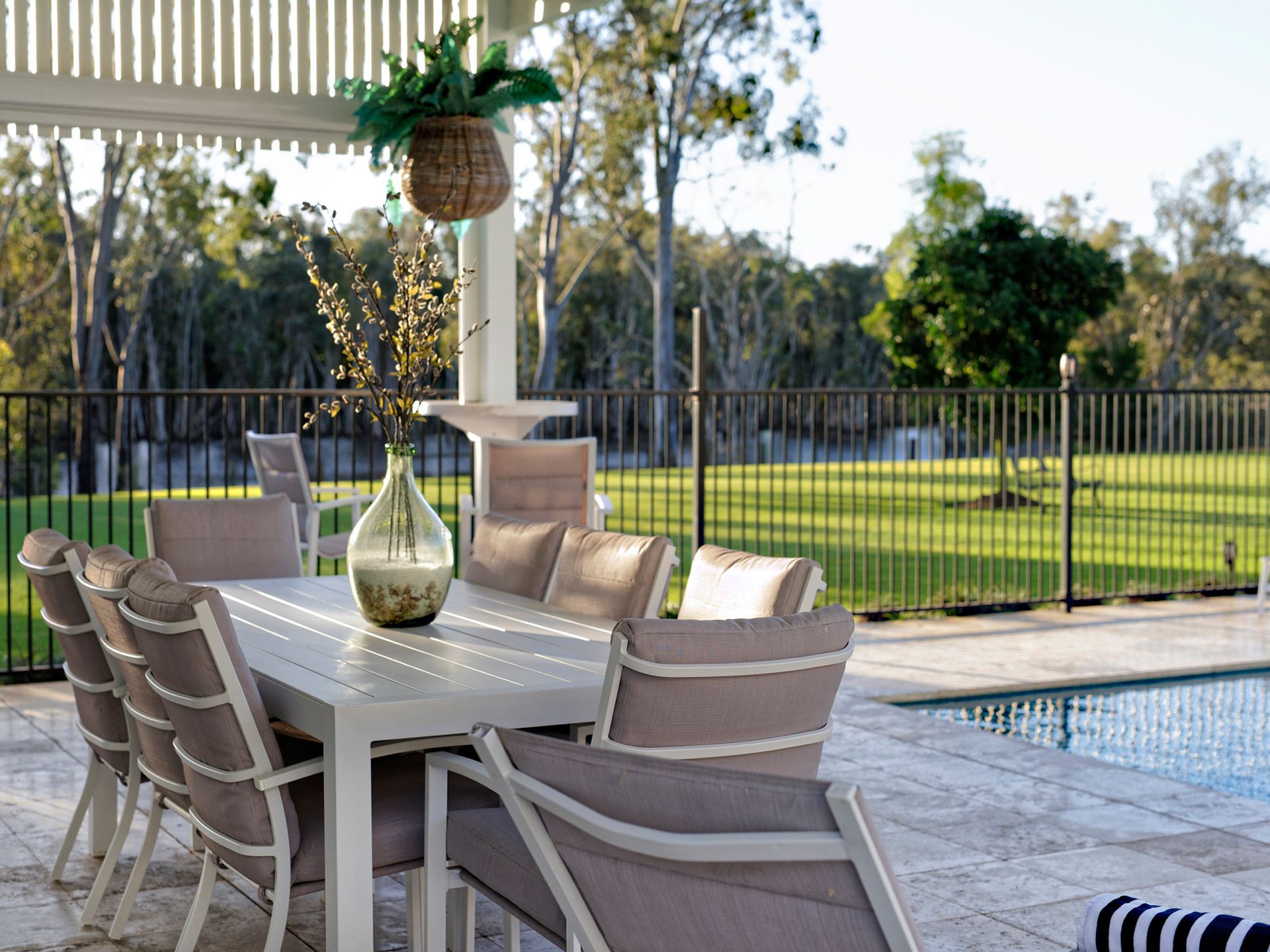 The home wraps around a huge under roof outdoor entertaining space of which overlooks the pool and Tantitha Lagoon. The space provides shelter from any wind or rain however still provides a lovely, open airy feeling to enjoy Bundaberg's ideal climate.