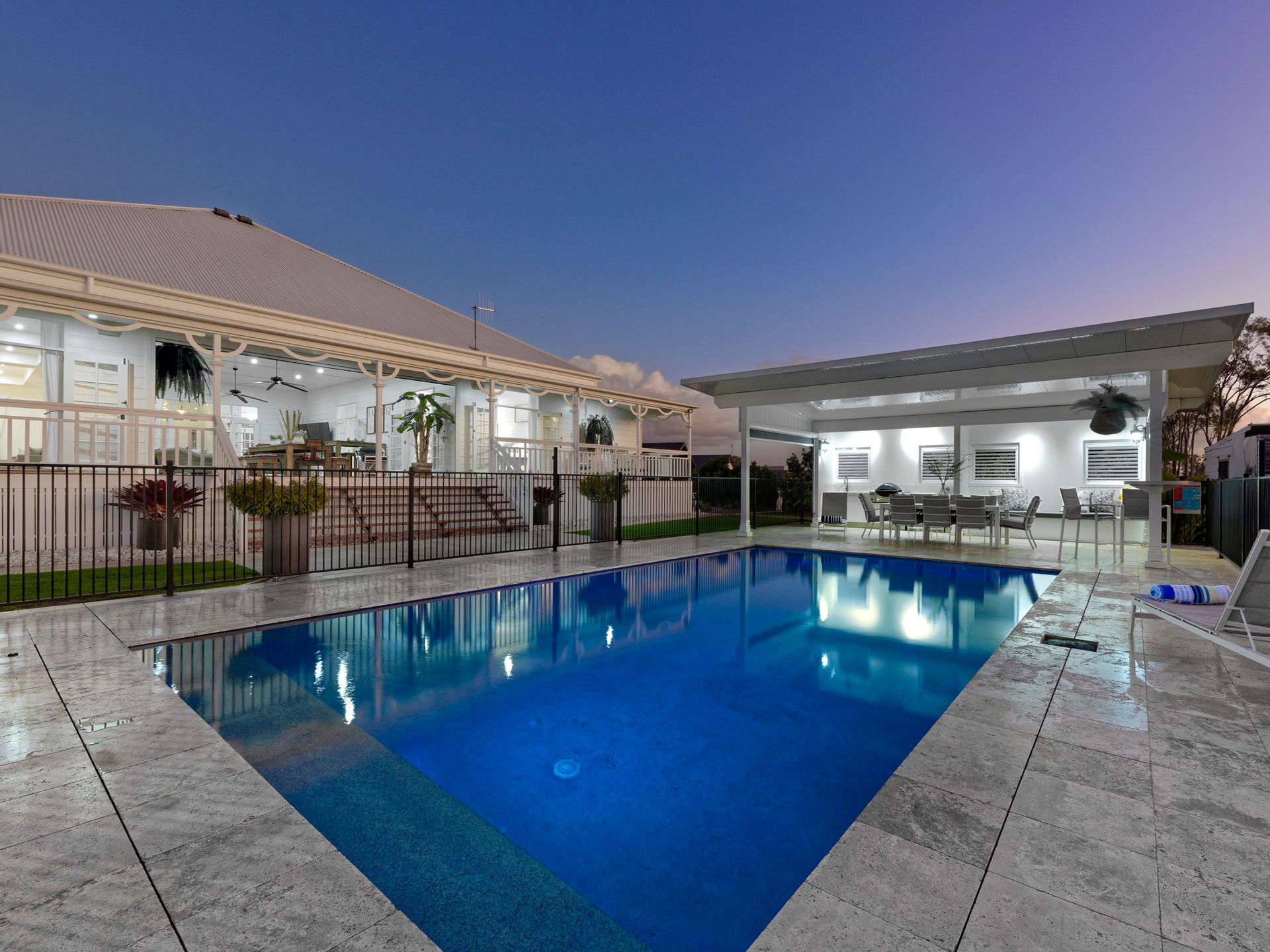 If all that is not enough, you have a 9m x 5m concreate magnesium mineral pool with an amazing pool house set up with an outdoor kitchen. Travertine tiles through-out the pool house, around the pool and even the pathways to the home and the shed. The pool house overlooking the lagoon and surrounds in privacy is just the spot. The pool is heated to ensure you enjoy it all year round.