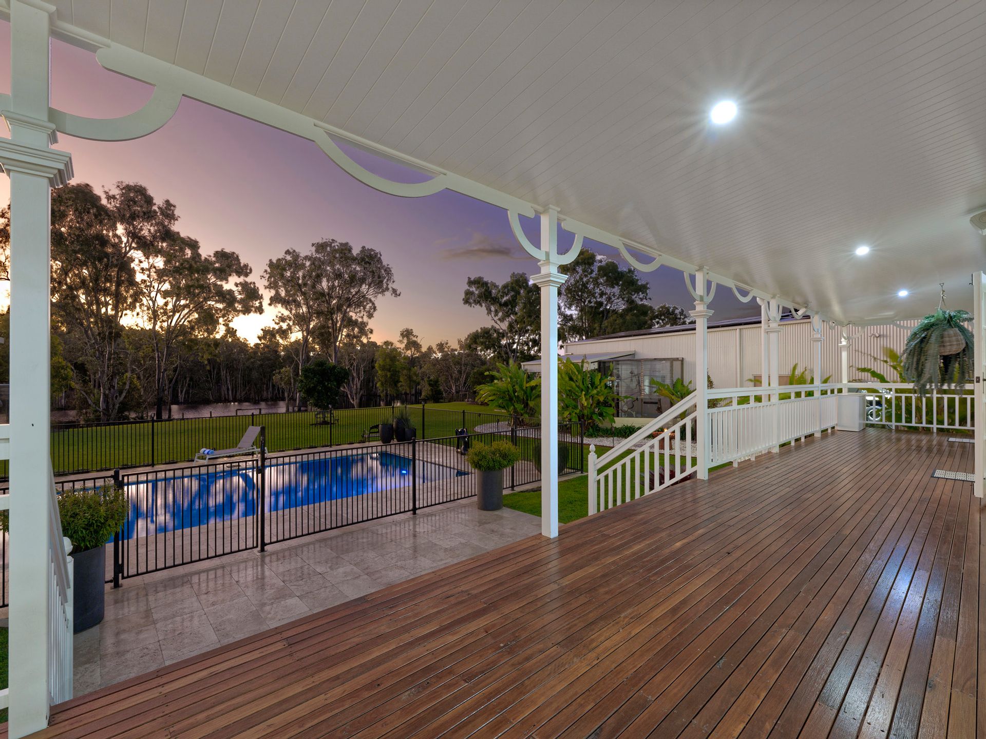 The home is surrounded by A Grade QLD blue couch under full irrigation to stay green all year round with ease. The acre block is fully fenced for the dogs and even has a hand made solid timber custom entrance with electric gates to come and go with ease and style.