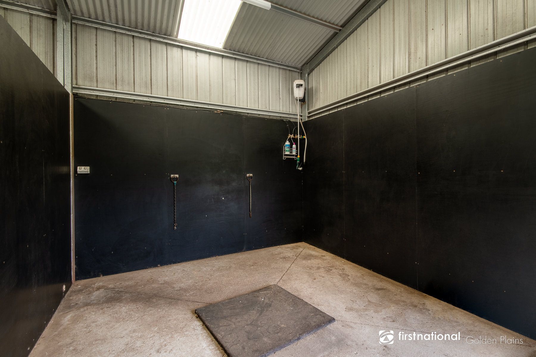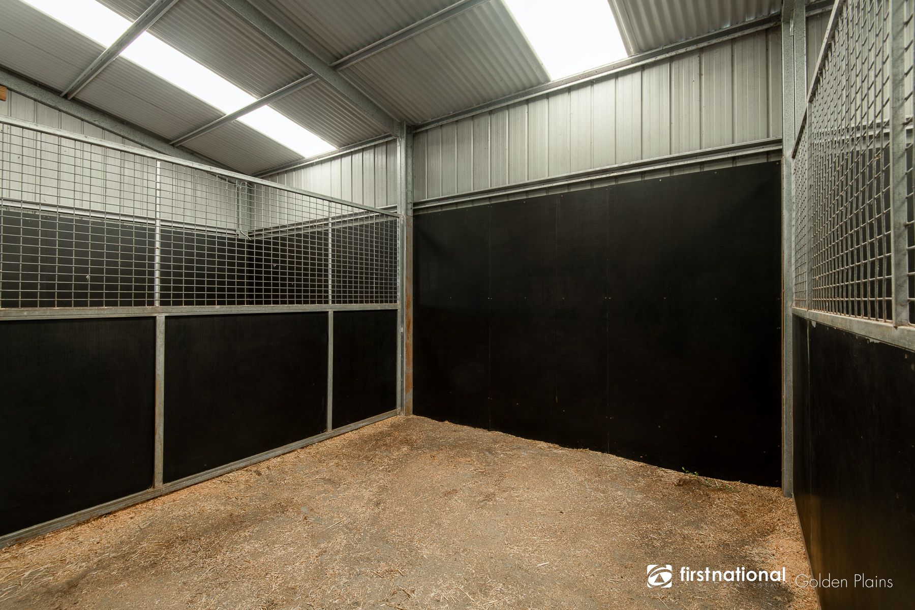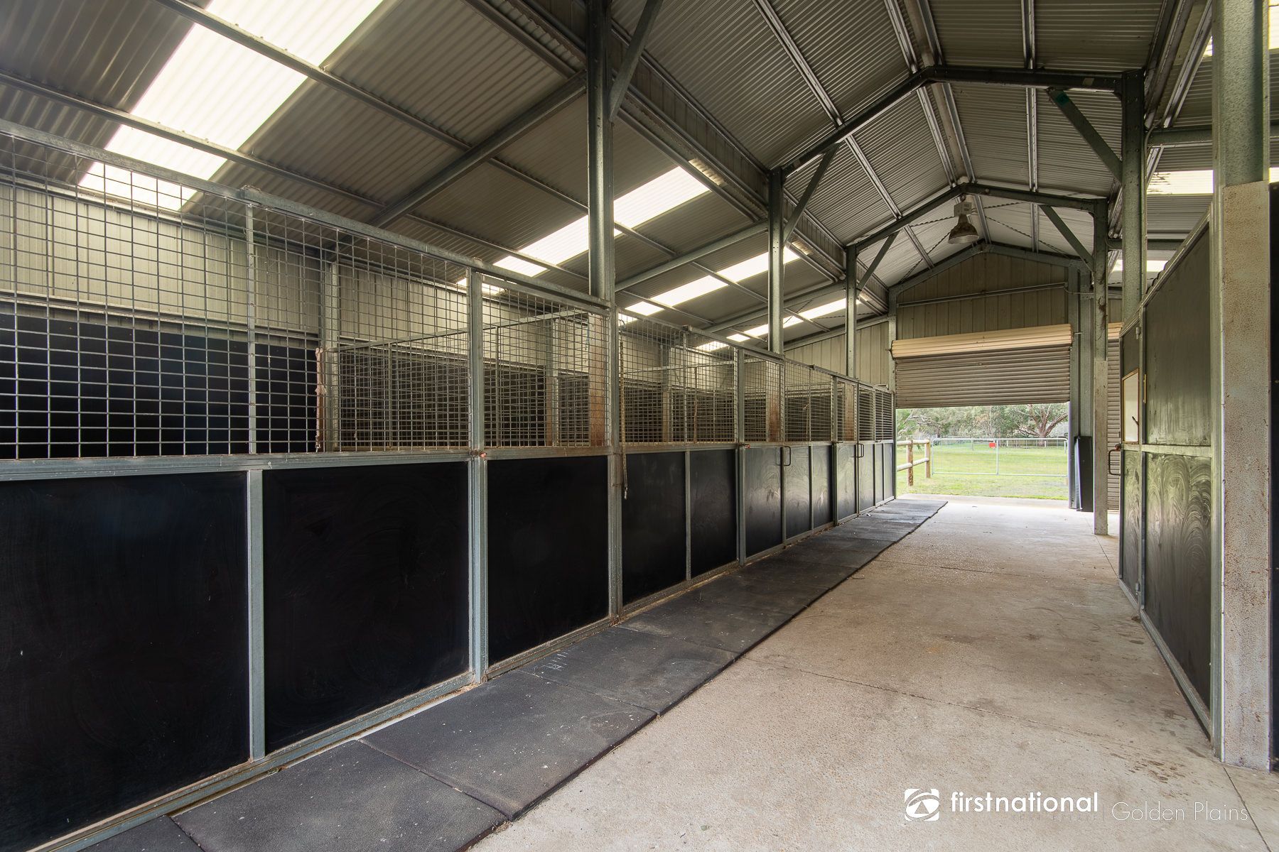 Tack/feed shed with kitchenette, warm wash bay and storage area. 4 horse shelters, 10 individual paddocks with auto fill water toughs.