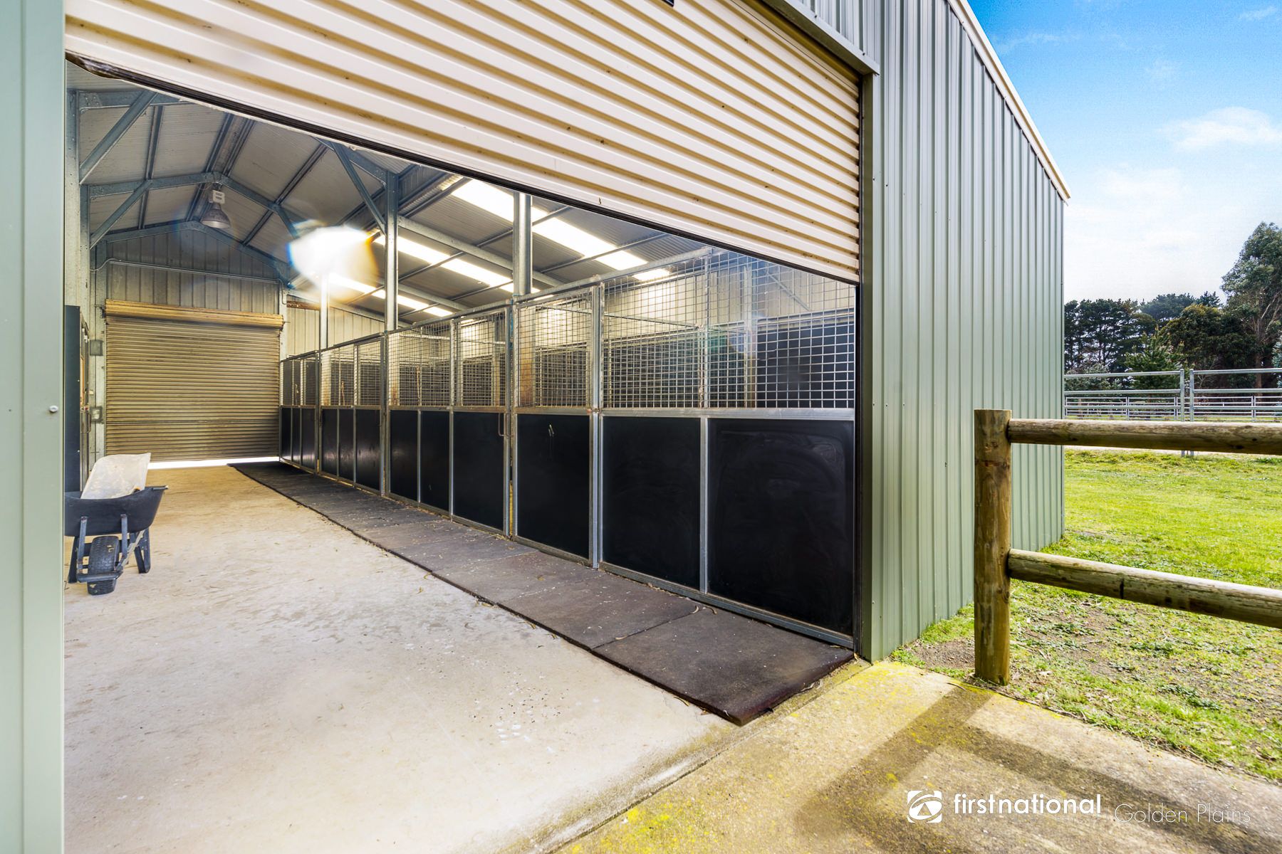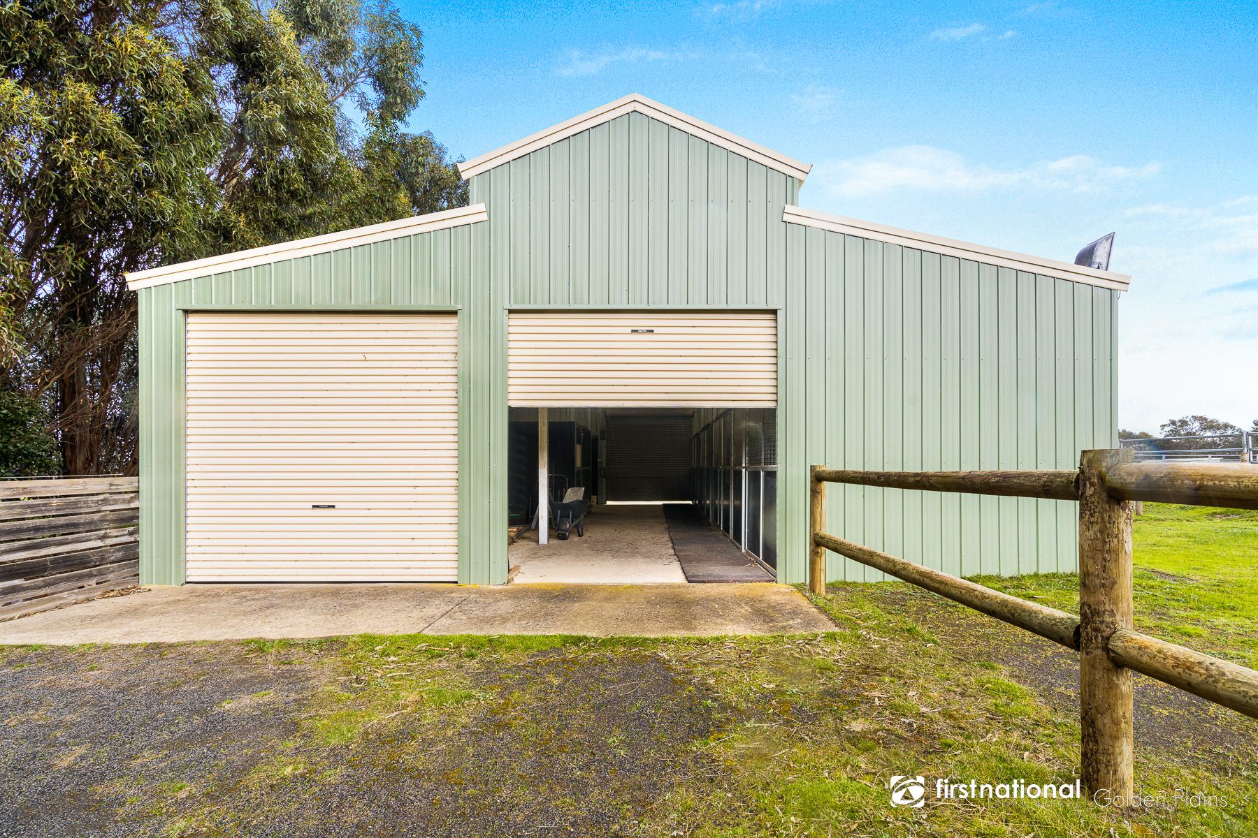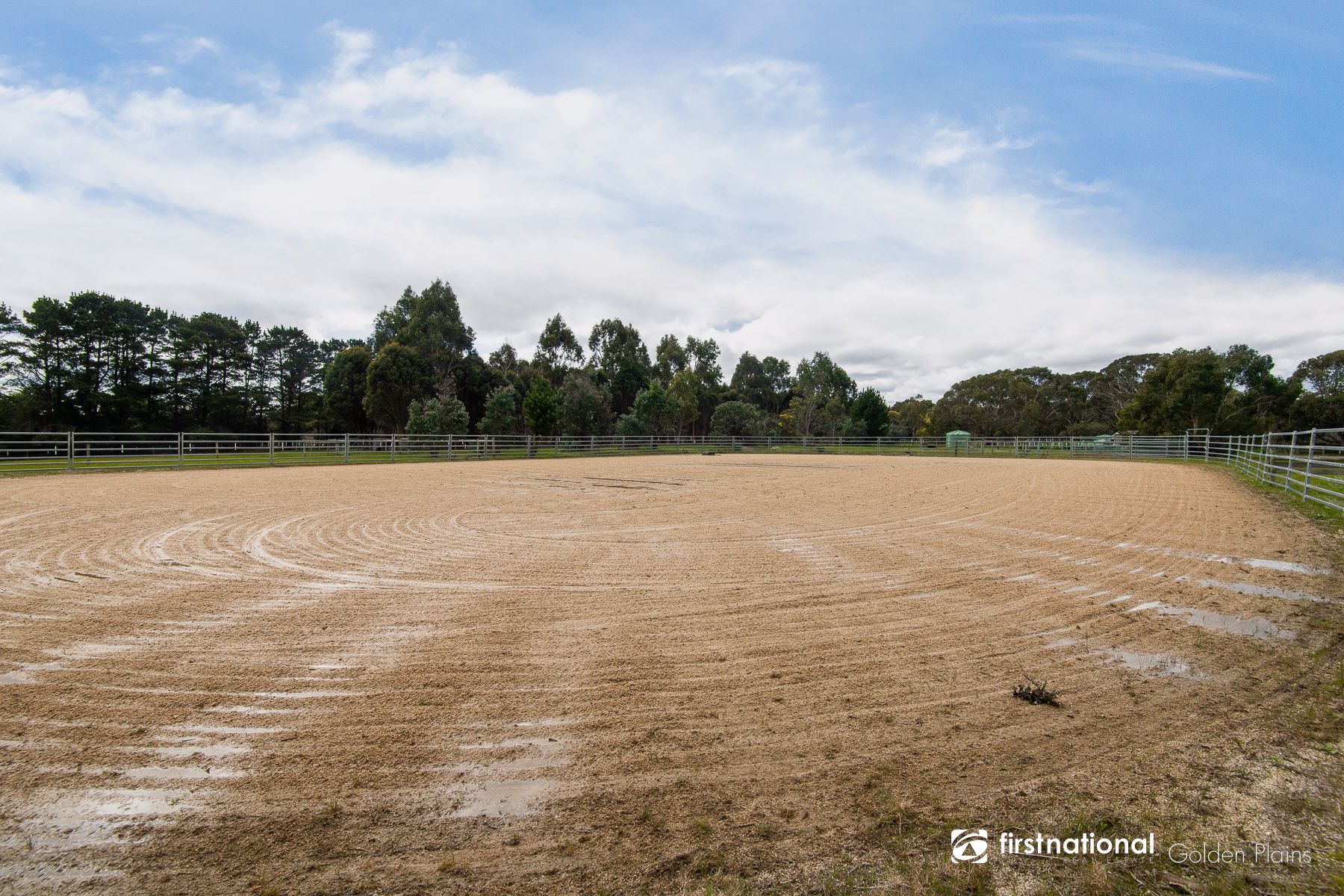 Tack/feed shed with kitchenette, warm wash bay and storage area. 4 horse shelters, 10 individual paddocks with auto fill water toughs.