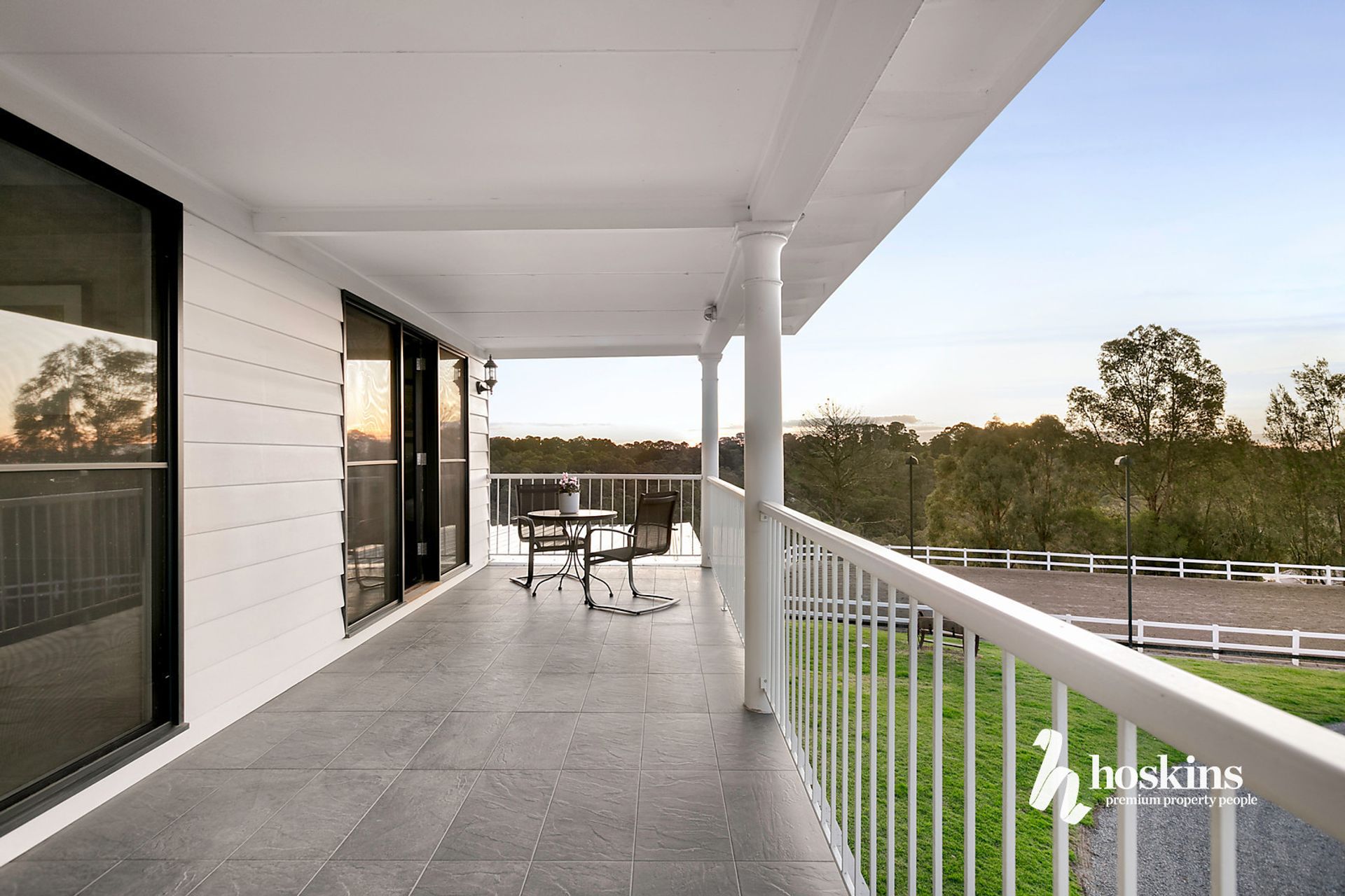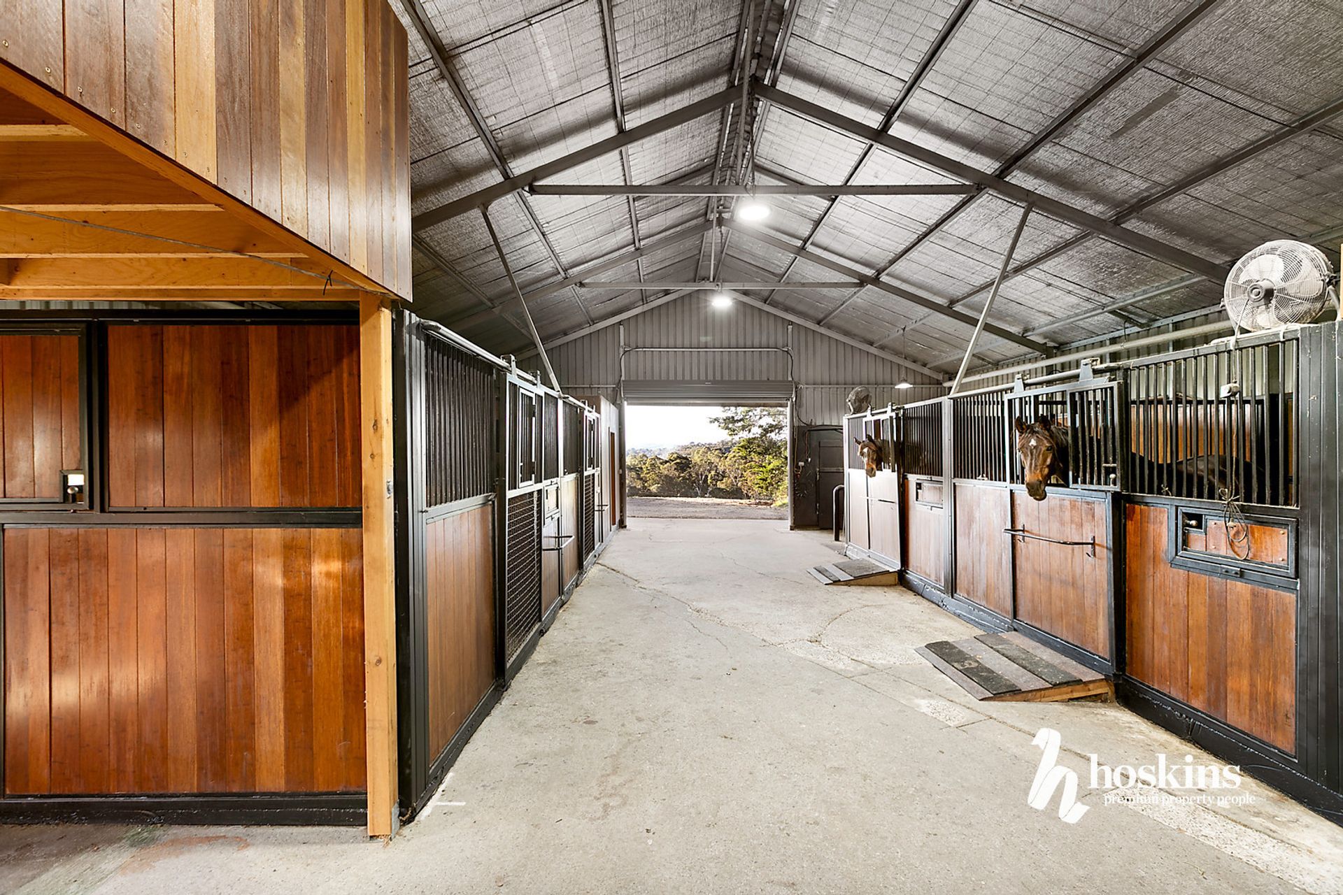 The well maintained 40x20m menage is flood lit. 4 large stables have rubber flooring (with swinging central dividers) and 2 day-yards attached. Also included in the stable block are a double wash bay/tie up area, keyless entry tack and feed rooms, hay area, large workshop and undercover float parking. There is also an additional shed to house 10 round-bales. Paddocks are fenced with either PVC post and rail, or Equimesh; with all paddocks featuring additional electric fencing, mud-control grids around gate entrances (no slippery mud in winter!) and a mud-controlled area within each paddock to place round bales.
