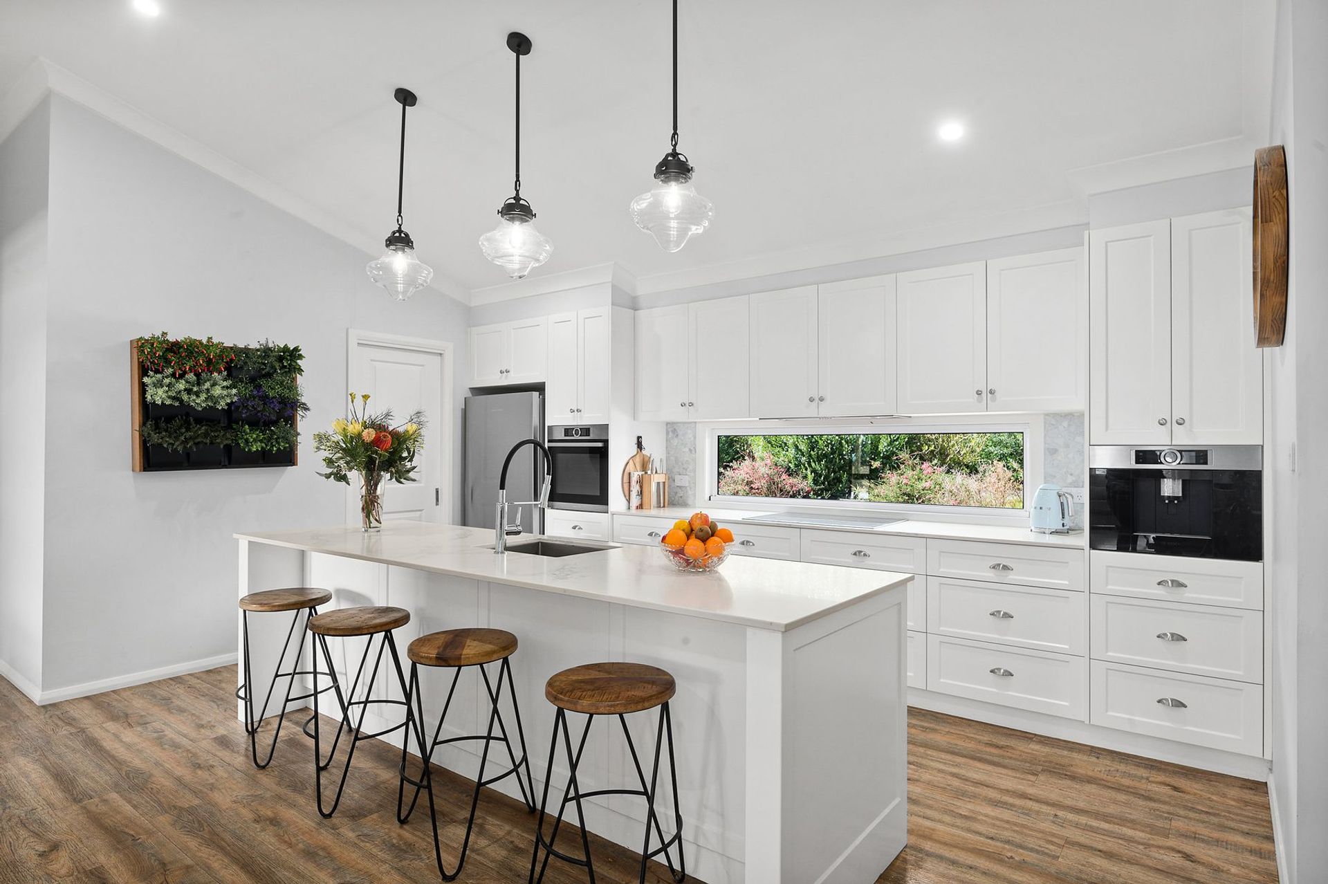 • Bosch appliances including an induction cooktop and integrated coffee machine feature in the gorgeous kitchen