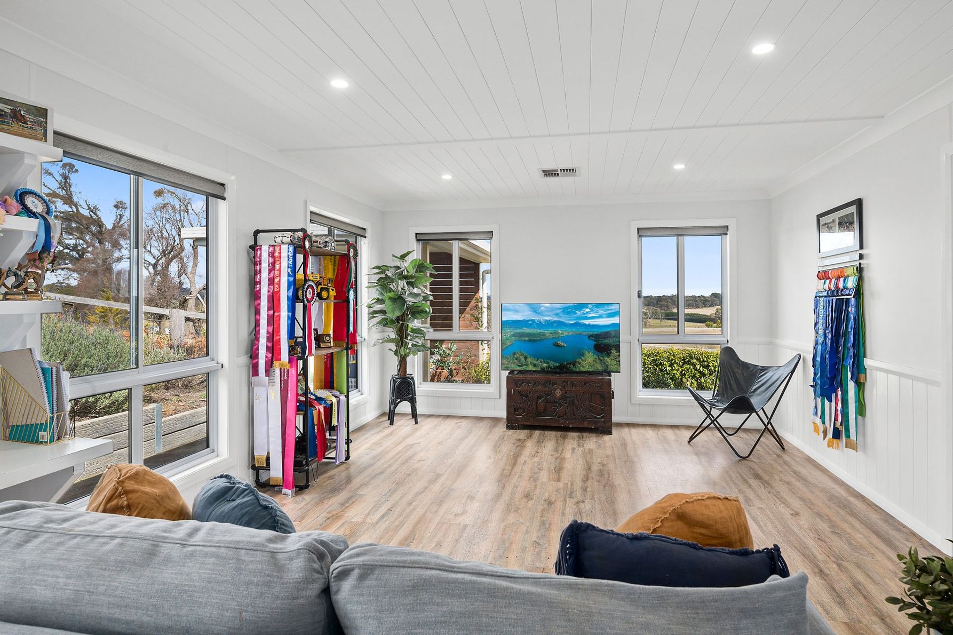 Set on a magical rural holding of 43-acres where a never-ending landscape of undulating hills and distant mountains awaits, this is a unique property opportunity offering endless scope for use and enjoyment. Built in 2020, the main home on the property exudes a timeless warmth and ever-present connectivity to the outdoors. The interiors shine with texture and softness, where country style blends effortlessly with contemporary accents, and where families large and small will thrive.