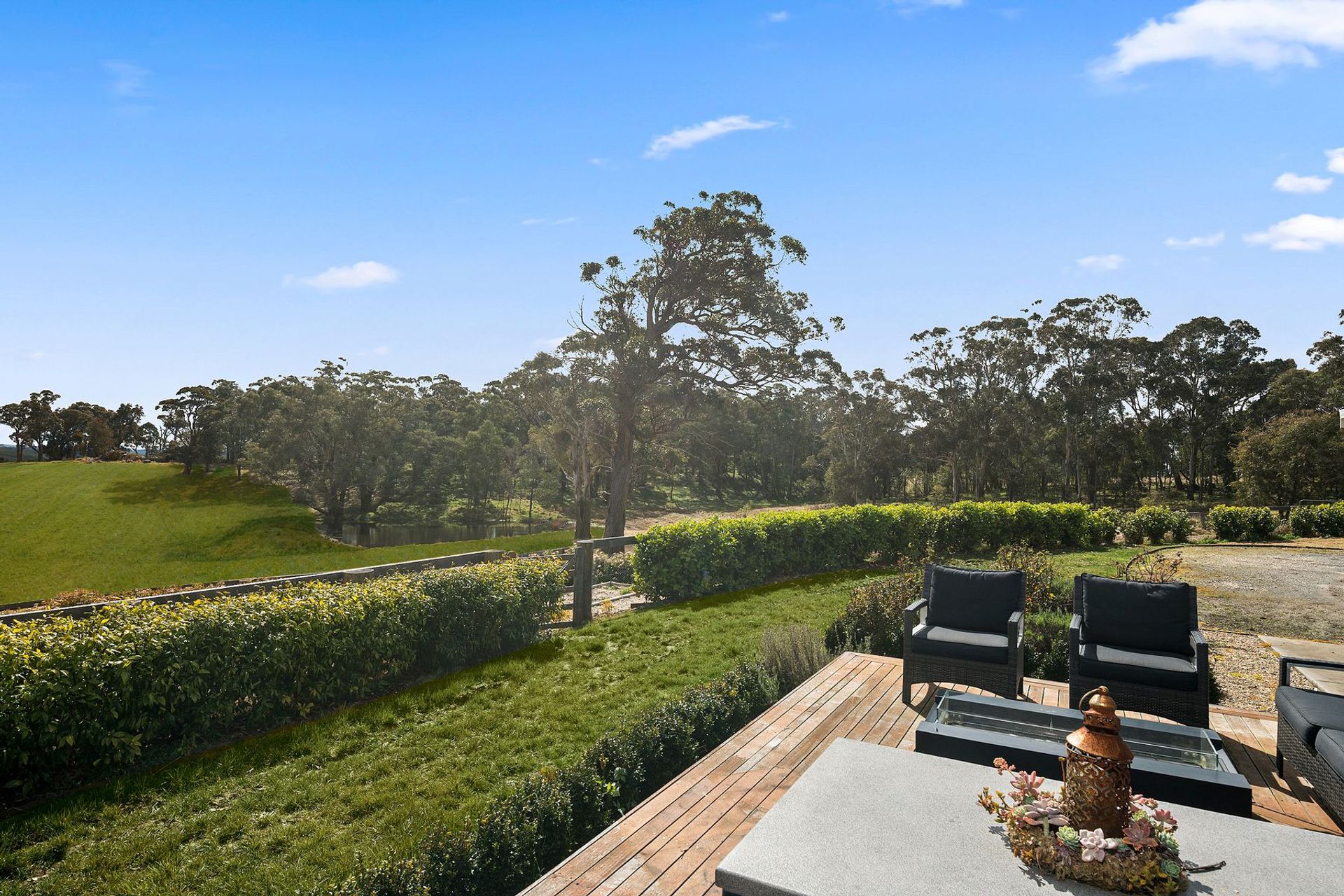 • Timber deck runs the length of the home and incorporates an alfresco setting, the perfect spot to savour the rural panorama