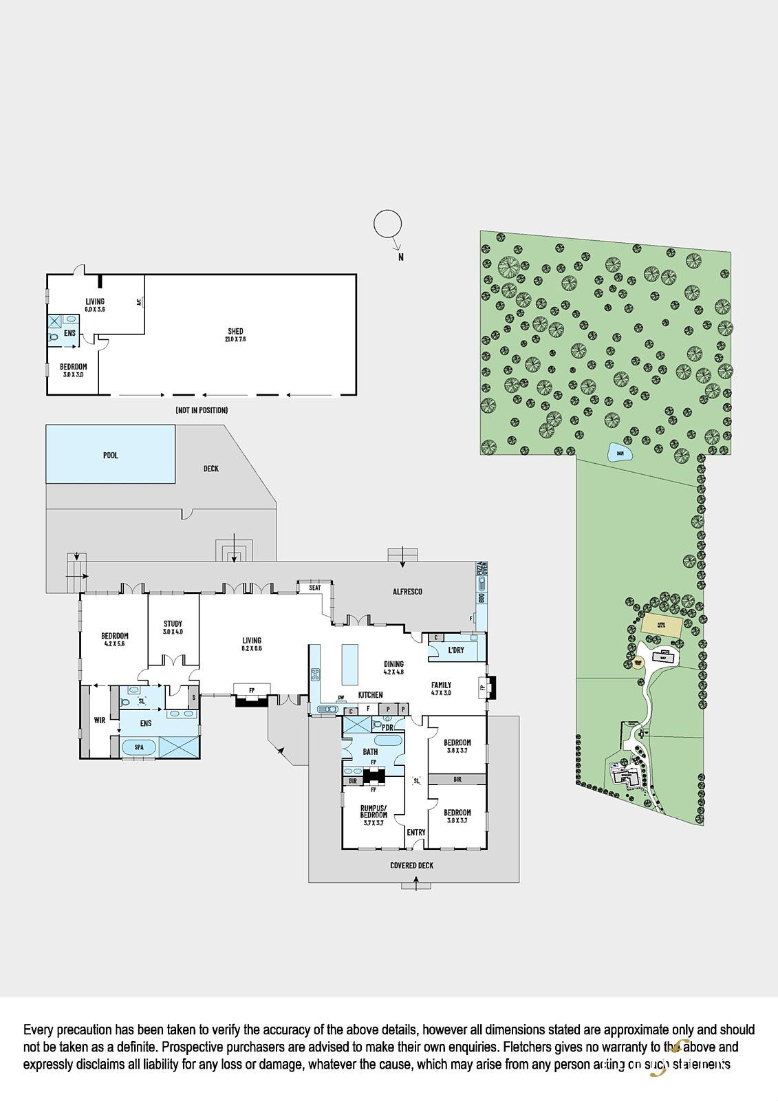 - Large shed with 3 phase power and guest accommodation / granny flat, including bathroom (provisions for kitchen) – has hot water service, gas cooking, septic system and air-conditioning