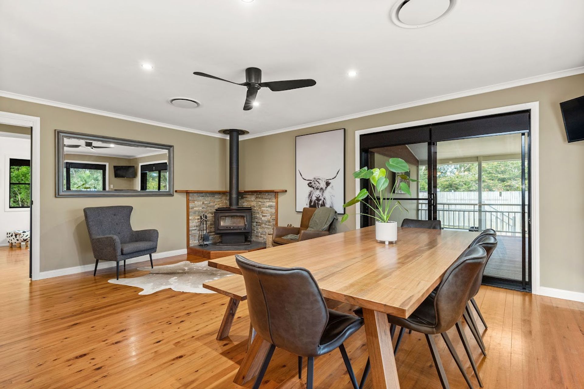 The home offers an extended under covered wrap around entertaining deck which opens directly from the