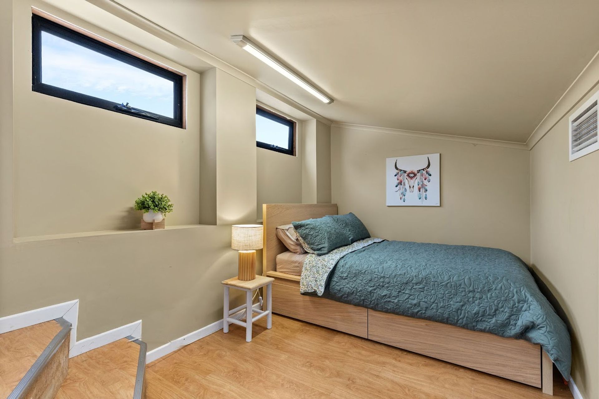 ceiling tiles and walk-in a robe. The opposite end the home offers a separate teenage retreat with access