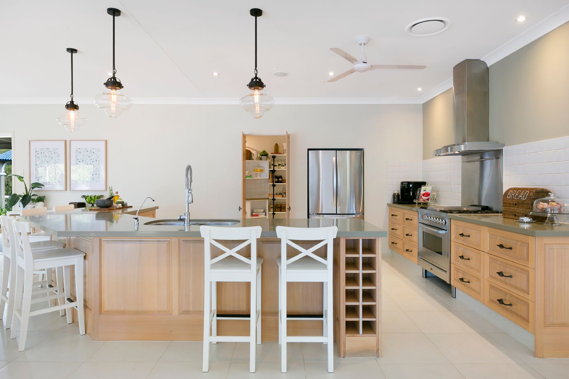 • Massive open plan gourmet style kitchen, plenty of stone bench space, stylish Tasmanian oak cabinetry, Ilve gas cooktop, stainless steel appliances and to top it all off a separate walk in butlers style pantry