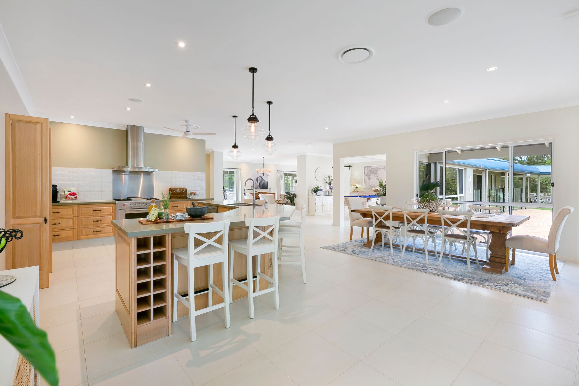 The Bonogin Valley is a desirable lifestyle choice and this single level 719m2 residence boasts sophisticated luxury, enriched by galleries of glass that invite in abundant sunshine. The resort-style living extends to multiple entertaining options, fully serviced by a massive gourmet style kitchen. Dine outdoors beneath one of many undercover entertaining areas surrounded by landscaped gardens and fire pit, whilst overlooking the large in-ground pool and beyond over the paddocks.