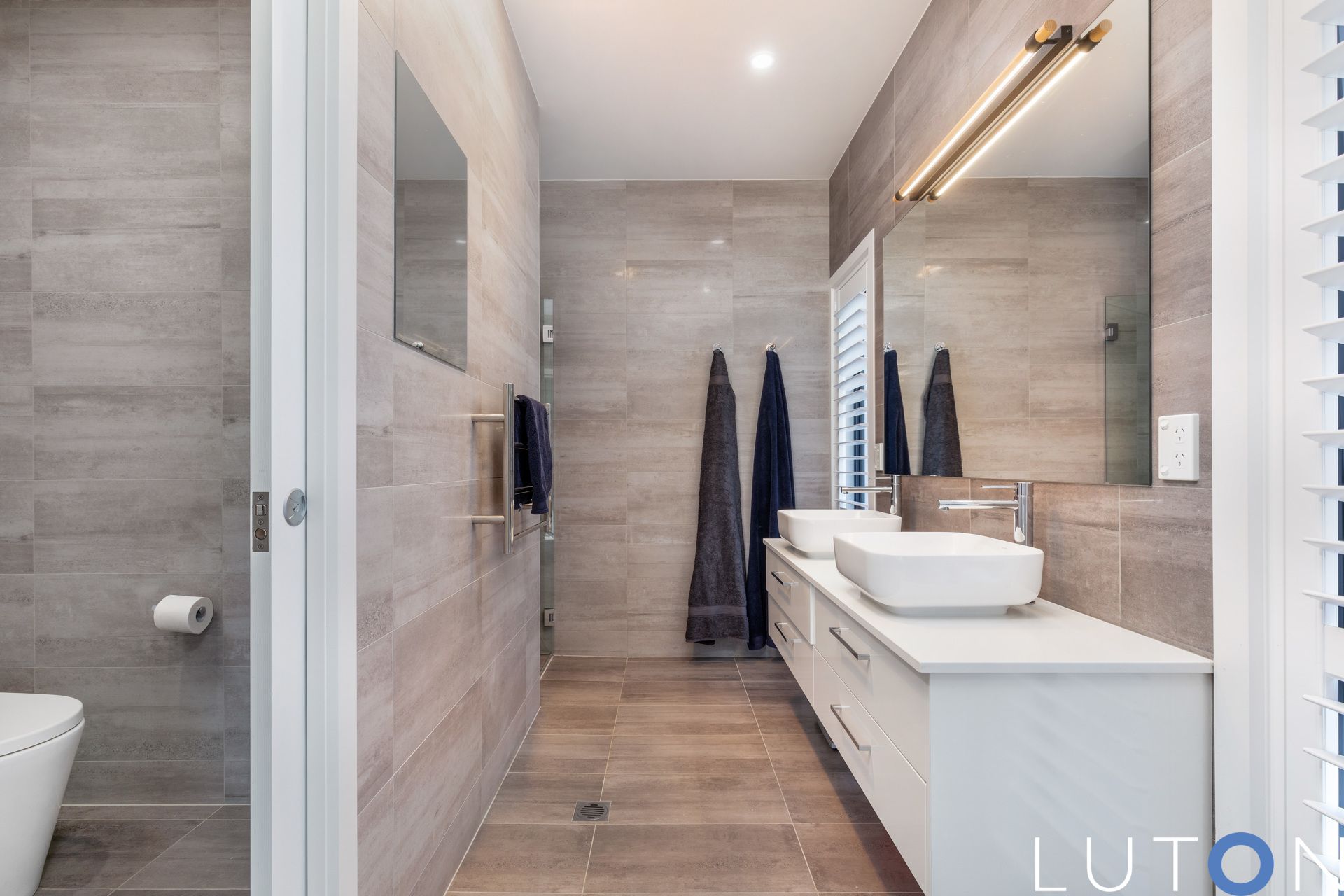 Designed to maximise both sun and light, the open plan kitchen has gorgeous Caeserstone bench tops, quality appliances and storage, the meals and large family room offers fantastic views over the property and beyond toward the Tinderry Ranges. This room is breathtaking with tall, raked ceilings and spotted gum laminated timber underfoot.