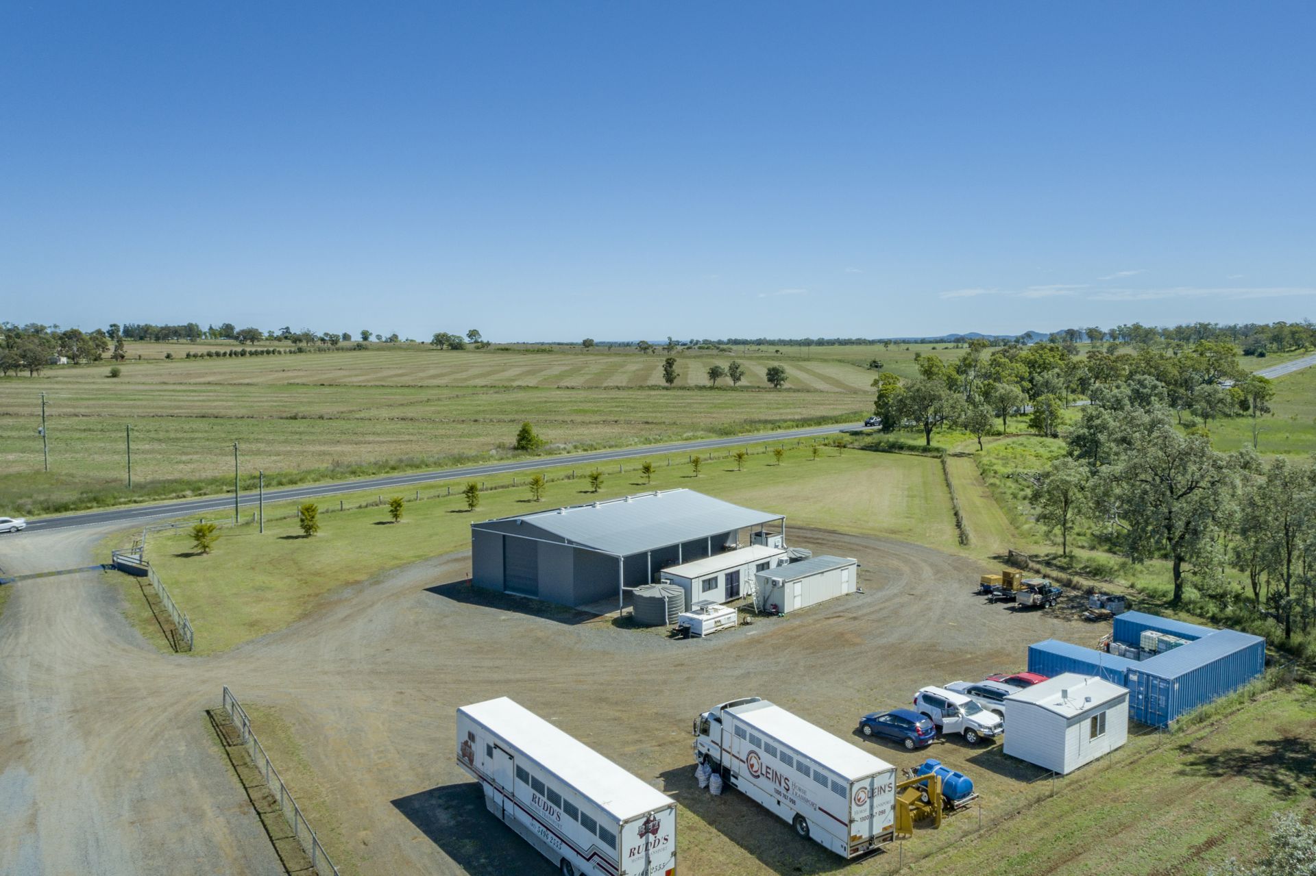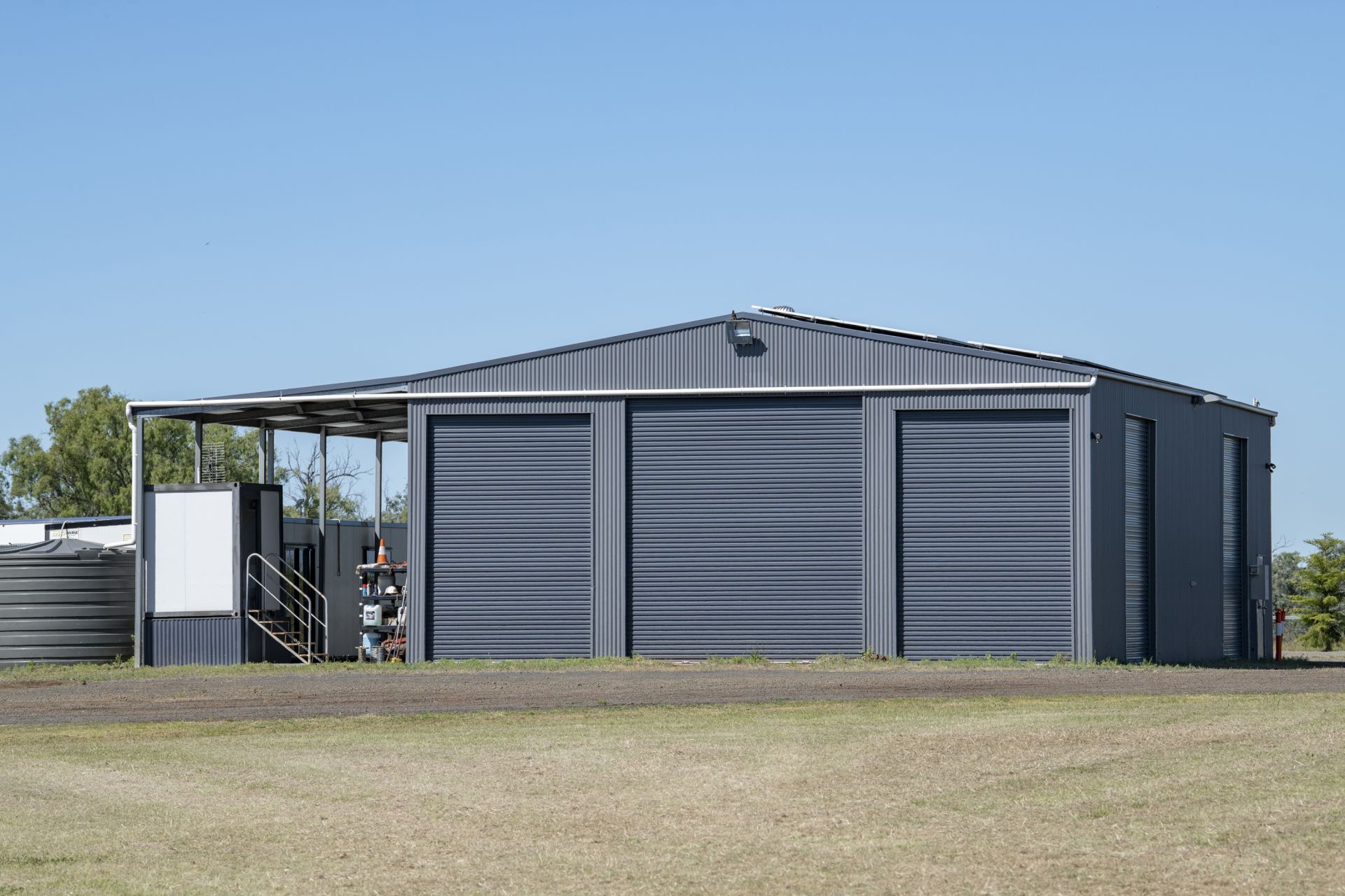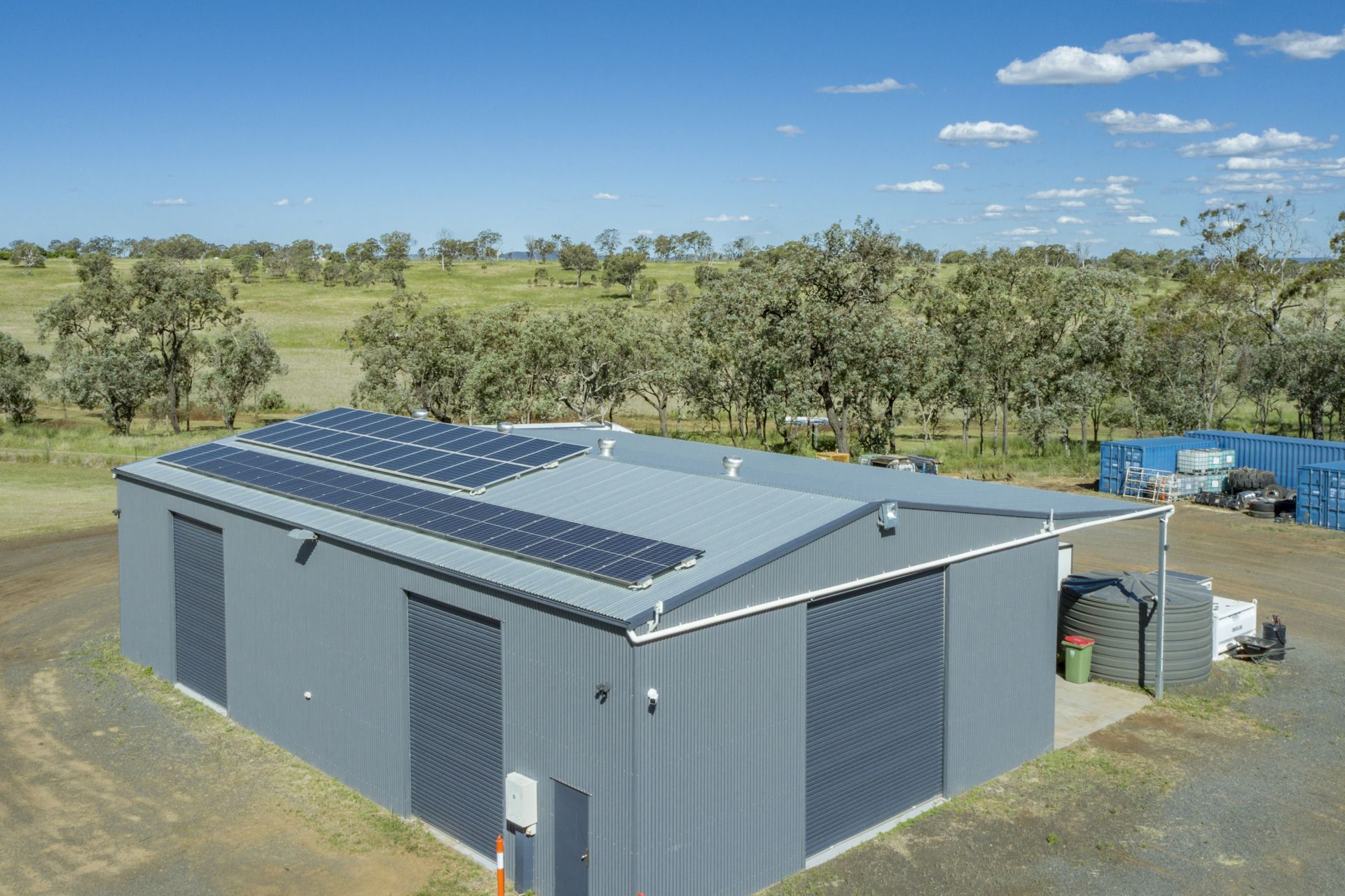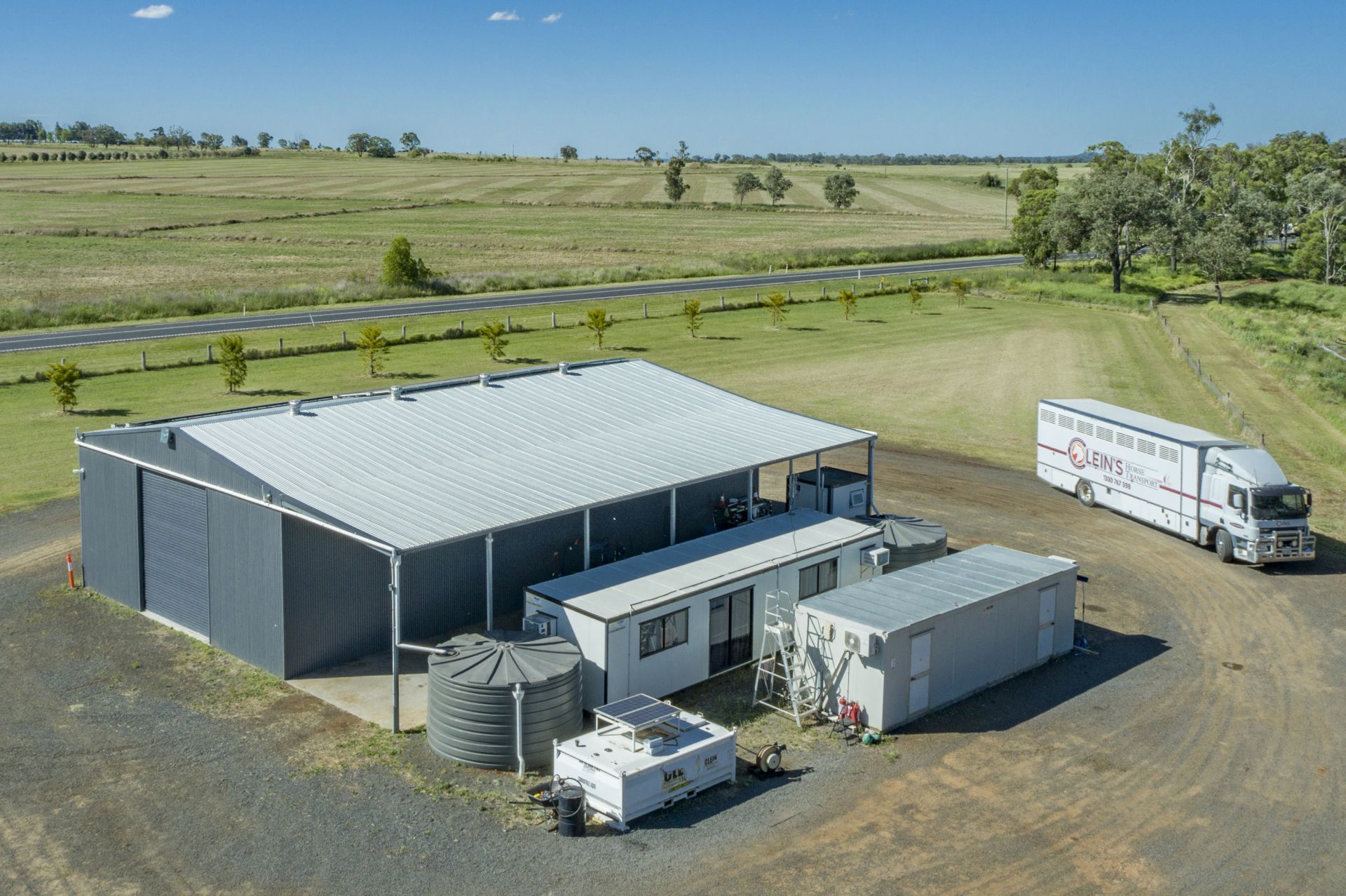 • 20*m x 12*m enclosed shed with 5*m high clearance, 5*m open awning, 1.5*m mechanics pit & 15* kW solar system