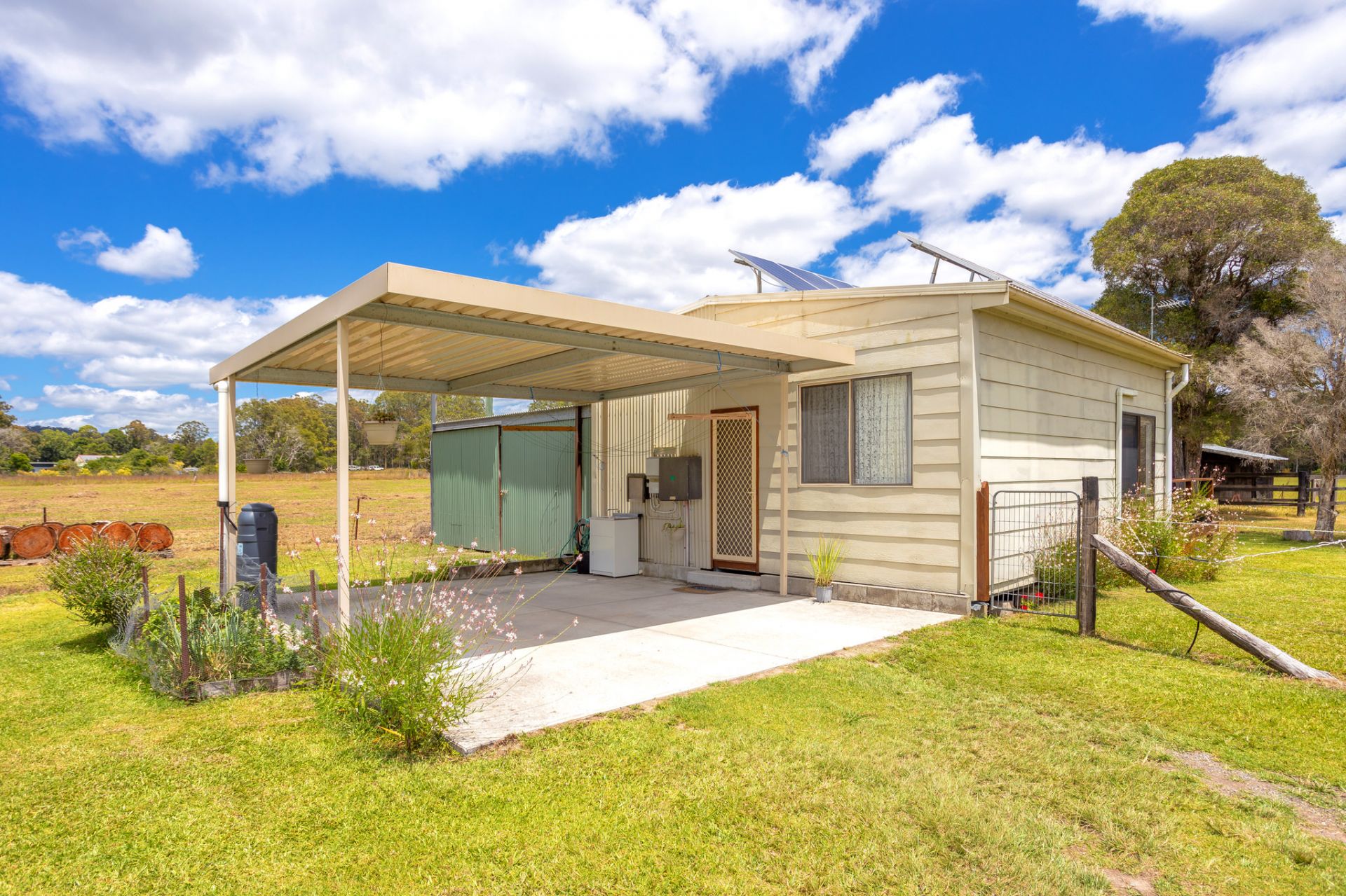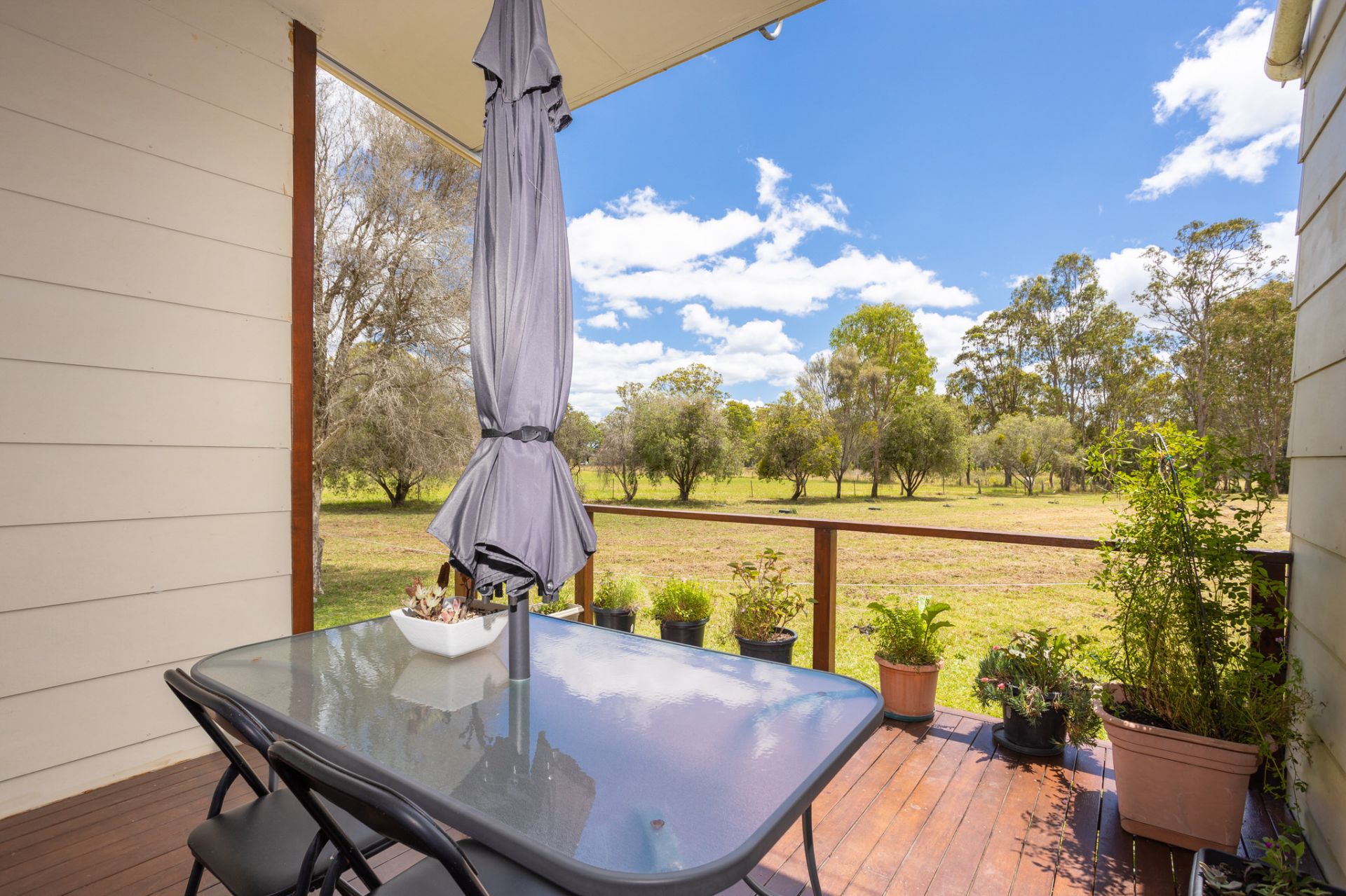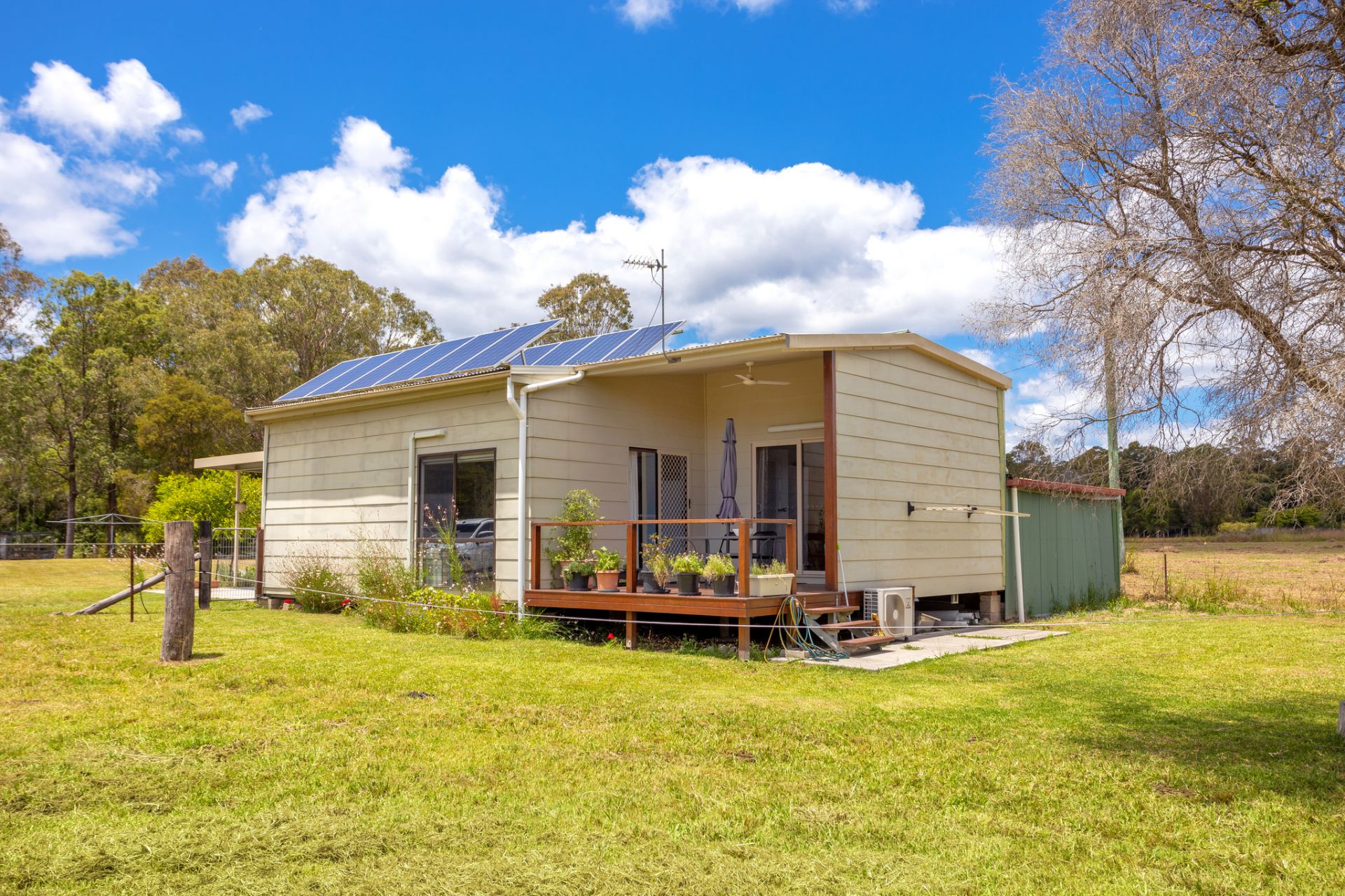 Behind is the self-contained granny flat, currently earning $300pw rent. Providing its own kitchen, bathroom, laundry dining and living, this granny flat has it all. One bedroom plus another living area/bedroom opens up to its own timber deck overlooking the paddocks where you can enjoy your mornings and watch the horses. High ceilings and large windows make this home feel exceptionally roomy.