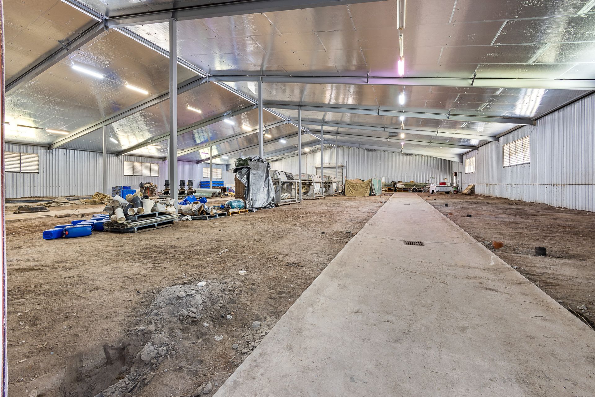 At the rear of the main shed (Shed No 1), is shed No. 2 which is set on a large 10m x 26.5m concrete slab. The shed is 9m x 12 m, has power connected and is constructed from insulated panels with large galvanised iron beams.