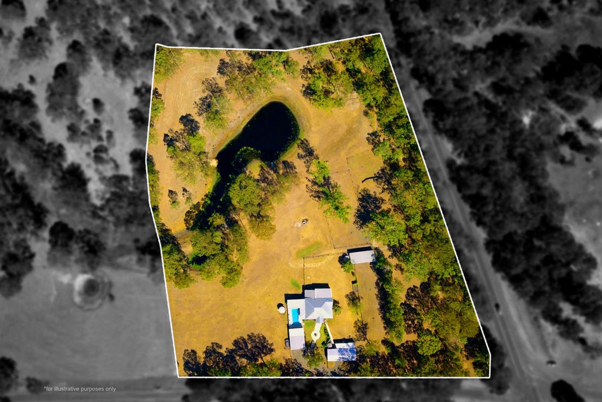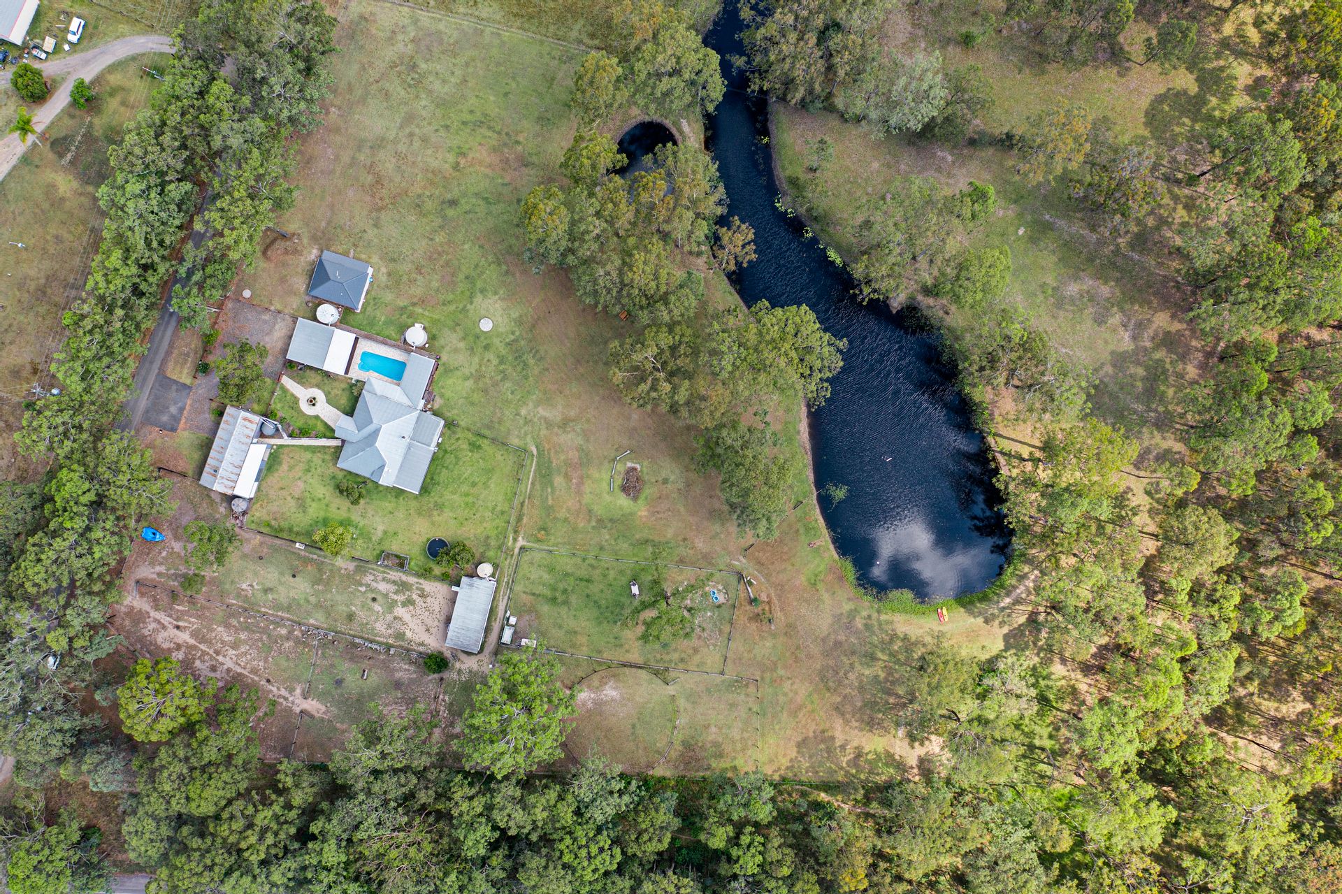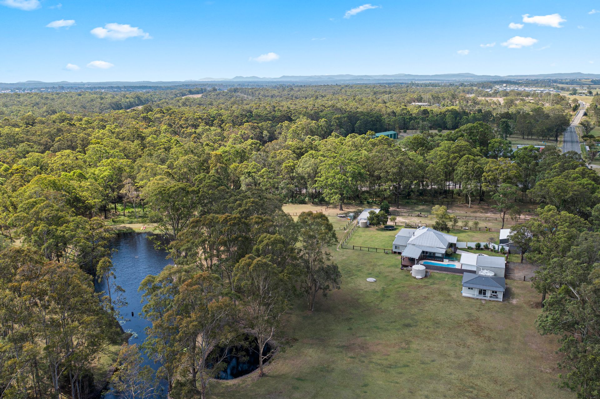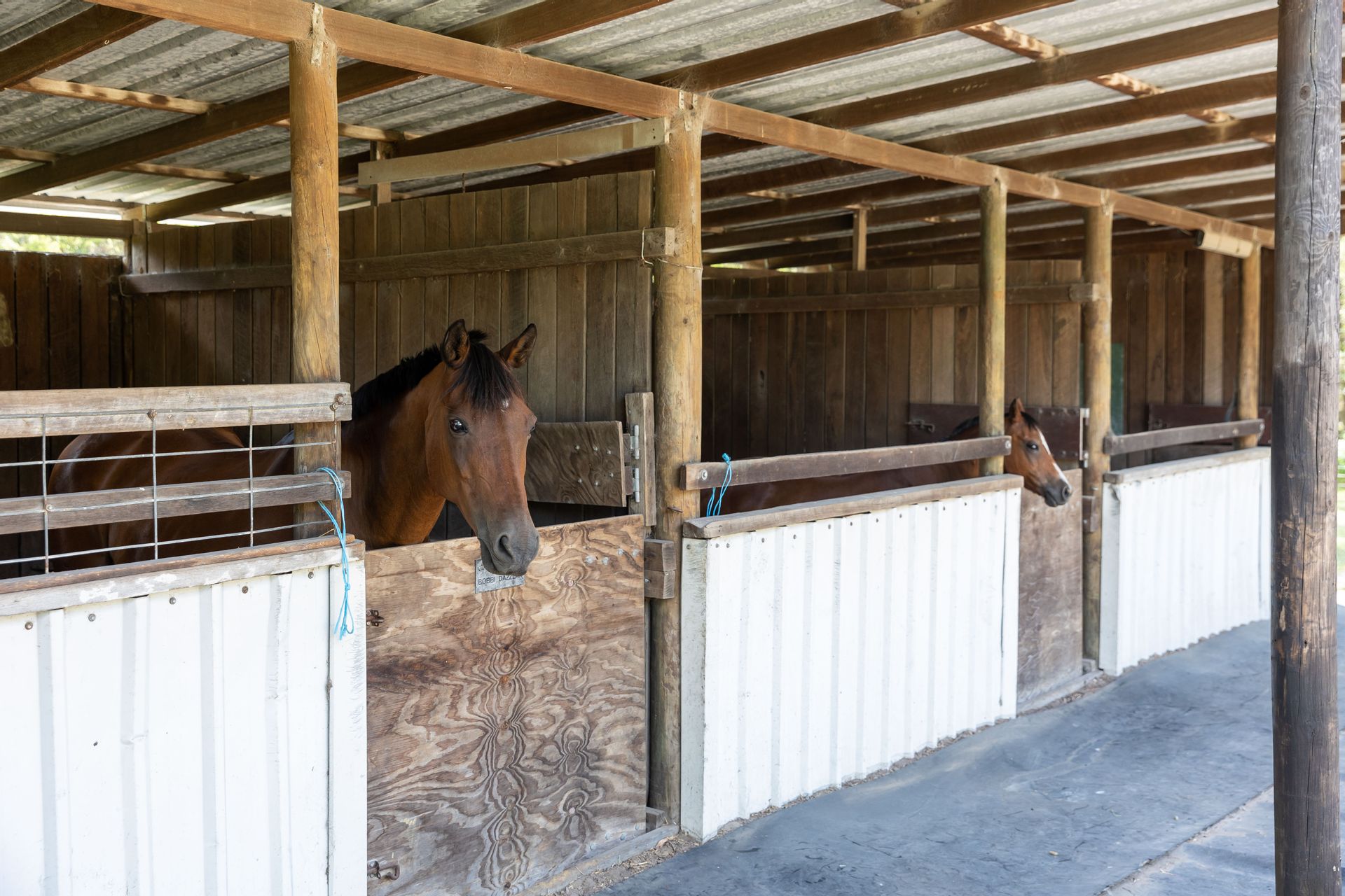 Multiple horse paddocks, 3 x stables, feed and tack shed.