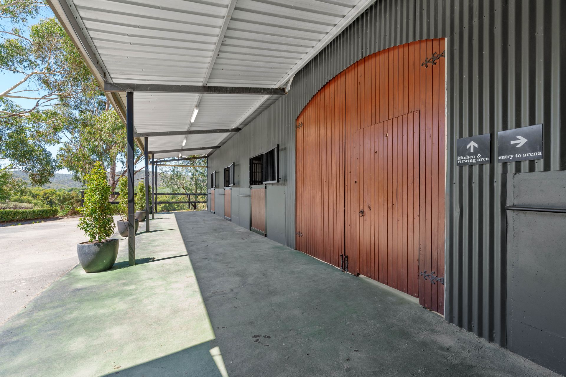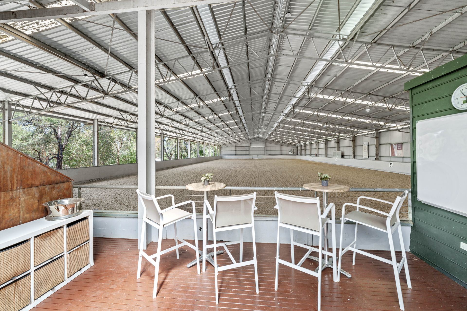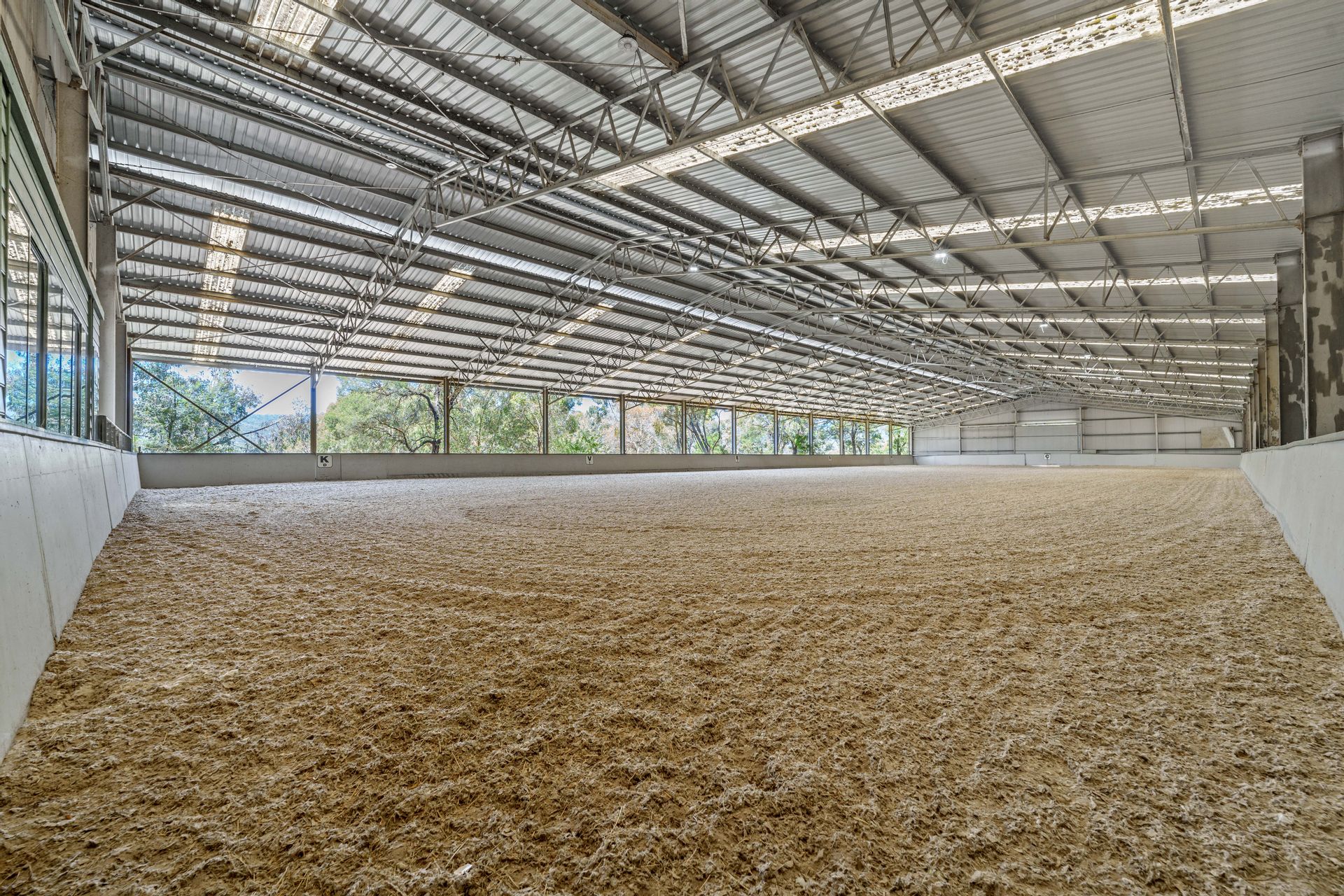 Indoor Stables - Feed Room + Laundry + Tack Room + 4 x Wash Bay + Tie ups 7 x undercover boxes (rubber flooring) Indoor Arena - 70 x 30m + Grandstand + Clubhouse + studio + storage Outdoor Arena - 20 x 60m Outdoor Show Jumping Arena - 65 x 65m Warm up Arena - 45 x 35m Covered day yards - 23 boxes + wash bay + truck bay Huge Carpark/ Float turning bay Round yard - 15m Machinery shed - 11 bay + 2 storage rooms 30 Paddocks - individual shelters on each 2 Dams + Lagoon + 1 bore Solar Power