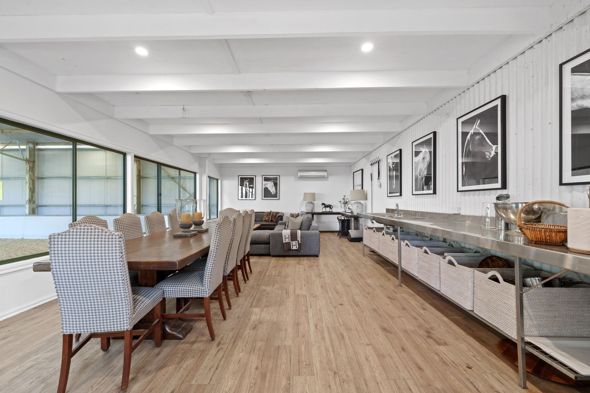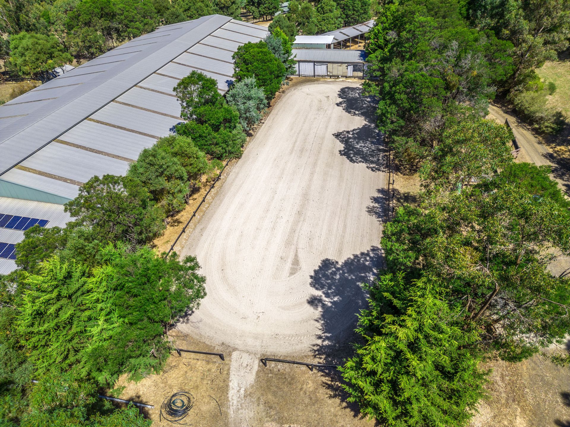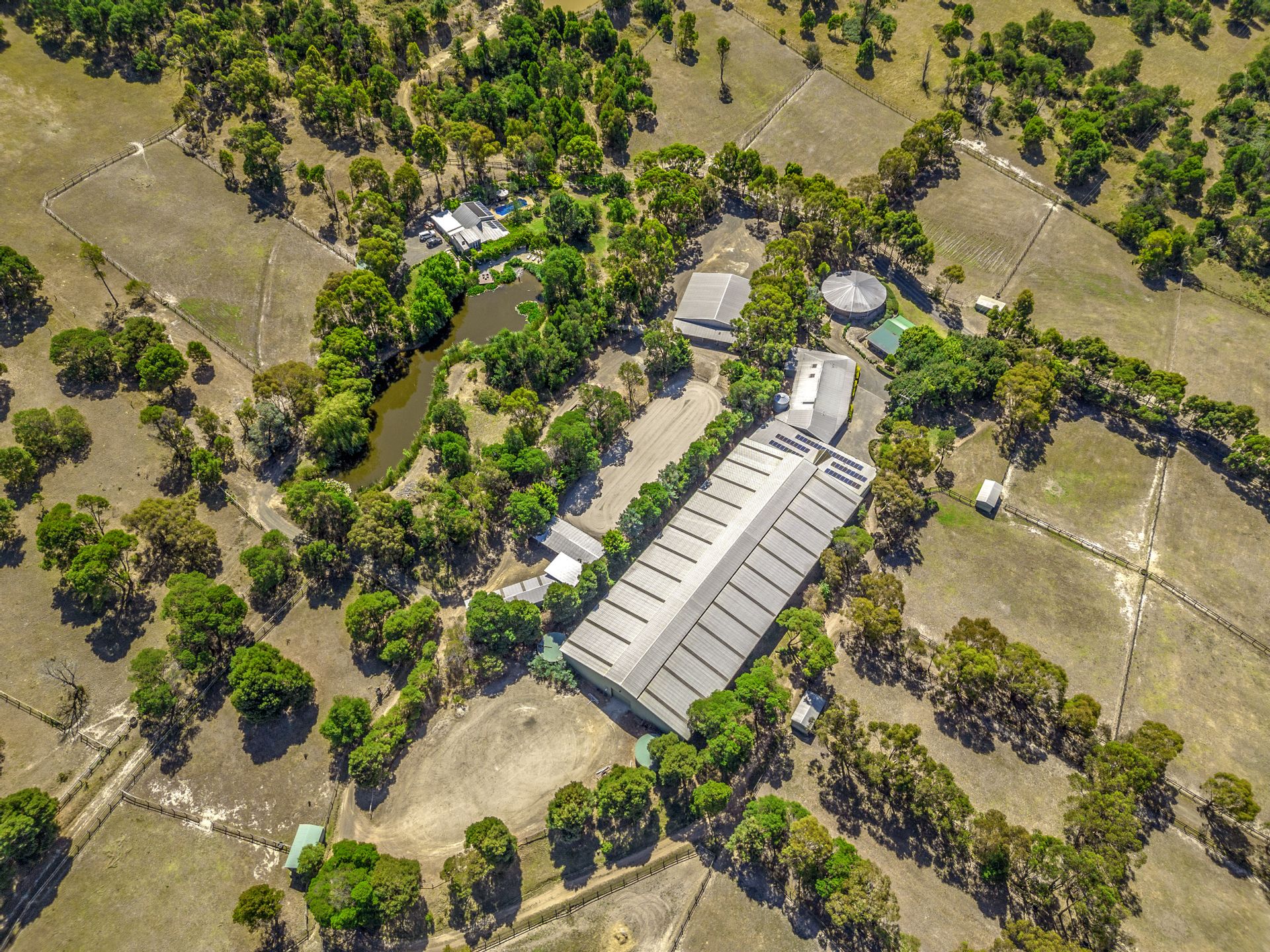 Indoor Stables - Feed Room + Laundry + Tack Room + 4 x Wash Bay + Tie ups 7 x undercover boxes (rubber flooring) Indoor Arena - 70 x 30m + Grandstand + Clubhouse + studio + storage Outdoor Arena - 20 x 60m Outdoor Show Jumping Arena - 65 x 65m Warm up Arena - 45 x 35m Covered day yards - 23 boxes + wash bay + truck bay Huge Carpark/ Float turning bay Round yard - 15m Machinery shed - 11 bay + 2 storage rooms 30 Paddocks - individual shelters on each 2 Dams + Lagoon + 1 bore Solar Power