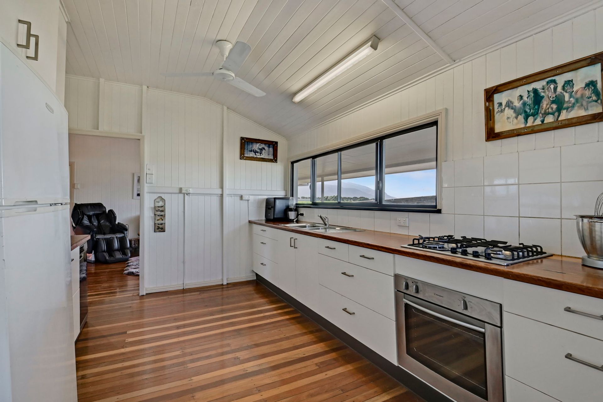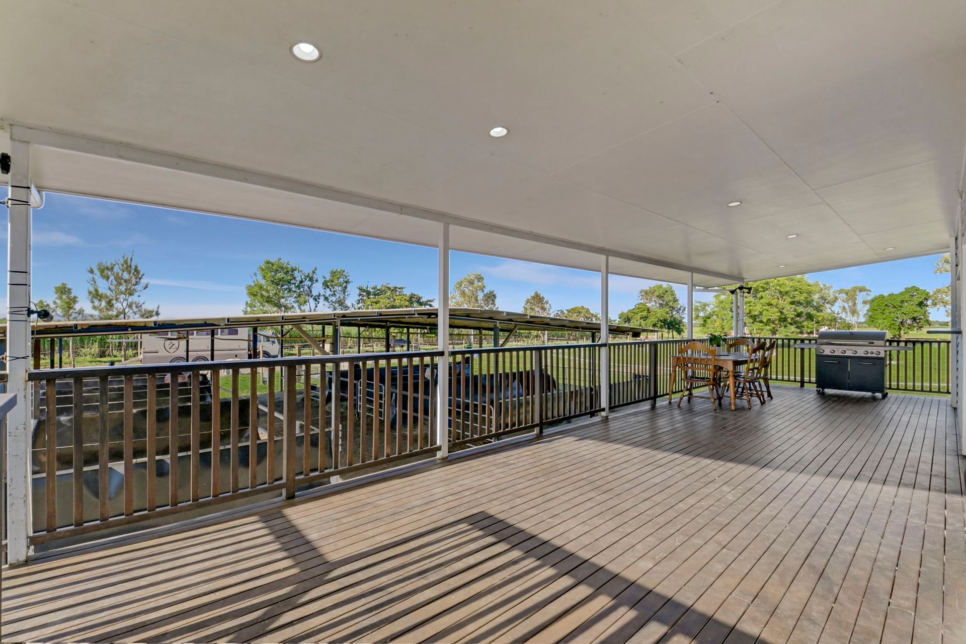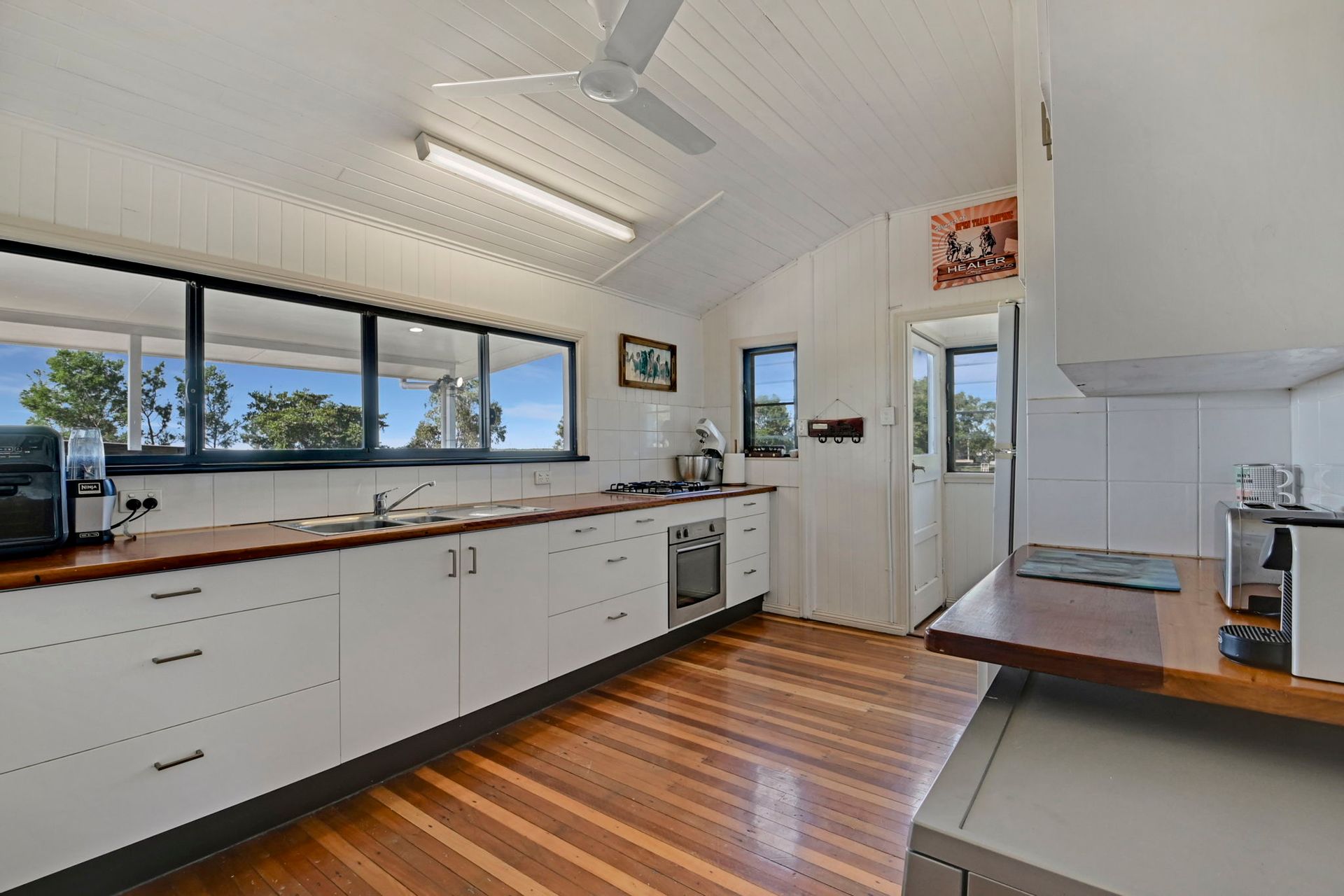 Narrow hardwood floor boards and tongue and groove walls throughout give this historic home, which was once the Shirbourne State School, a classic sense of style. A newly renovated bathroom features a large walk-in shower for easy access. The country style kitchen is great to cook in and features a 4 burner gas stove plus beautiful polished mango wood bench tops.There is a servery window to keep you connected to all the action on the rear deck. From here you can enjoy stunning sunsets over Mount Elliot with a beer in hand and keep an eye on all of your stock.