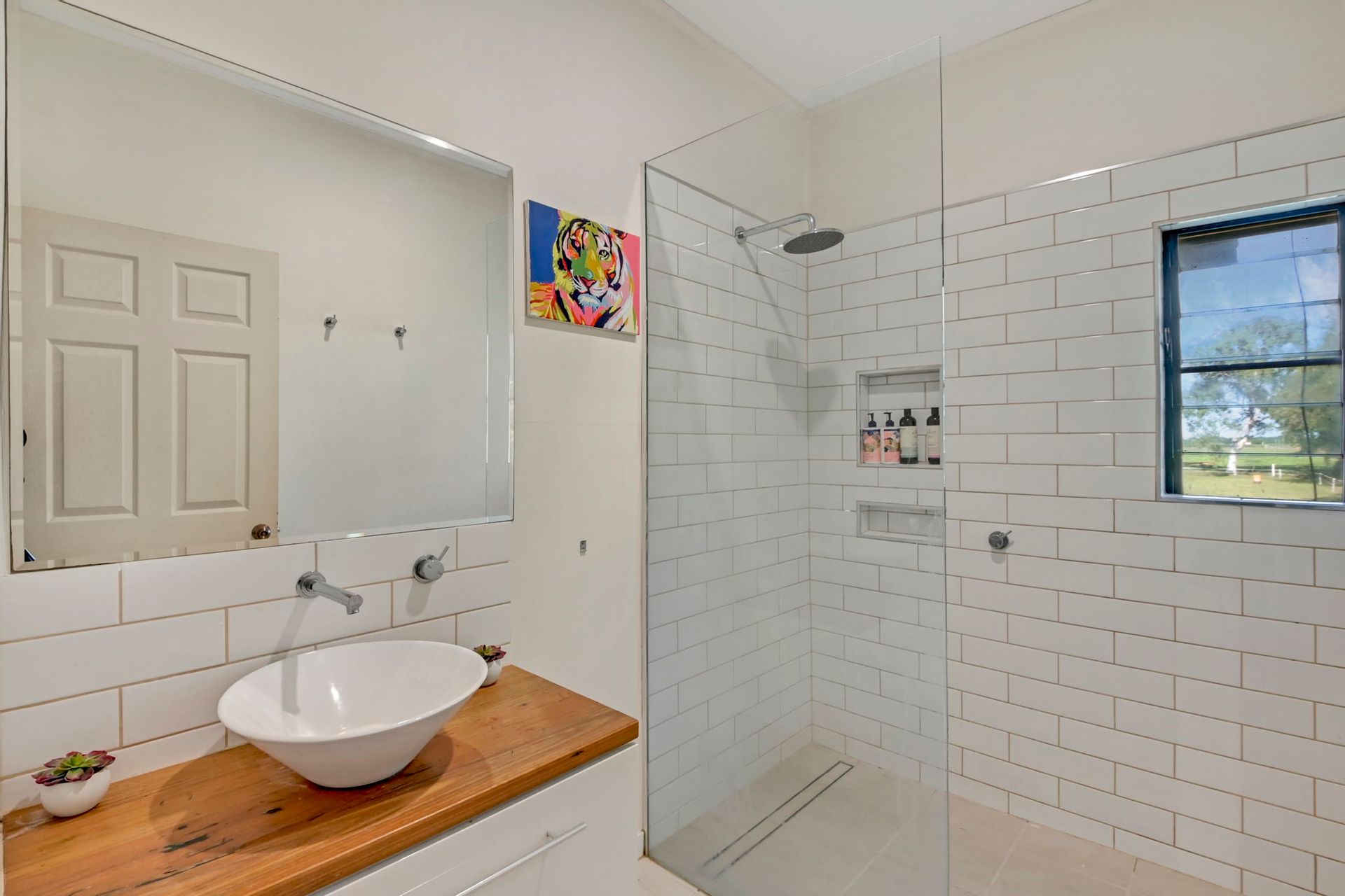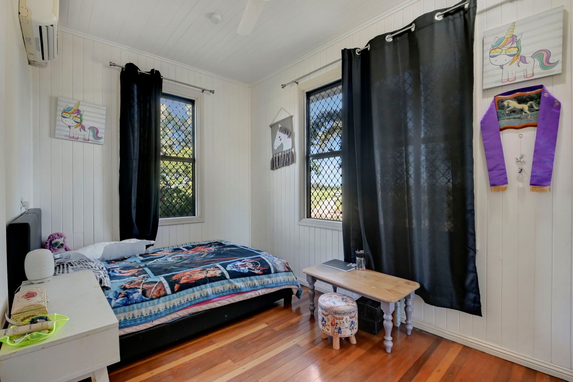 The master bedroom is large enough to fit a king size bed and features split-system air conditioning and a built in wardrobe. With plenty of windows you can enjoy views of the mountains right from the comfort of your bed and let the breeze right in. The secondary bedrooms also have hardwood floors, built in wardrobes and split system air conditioning to keep your family cool.