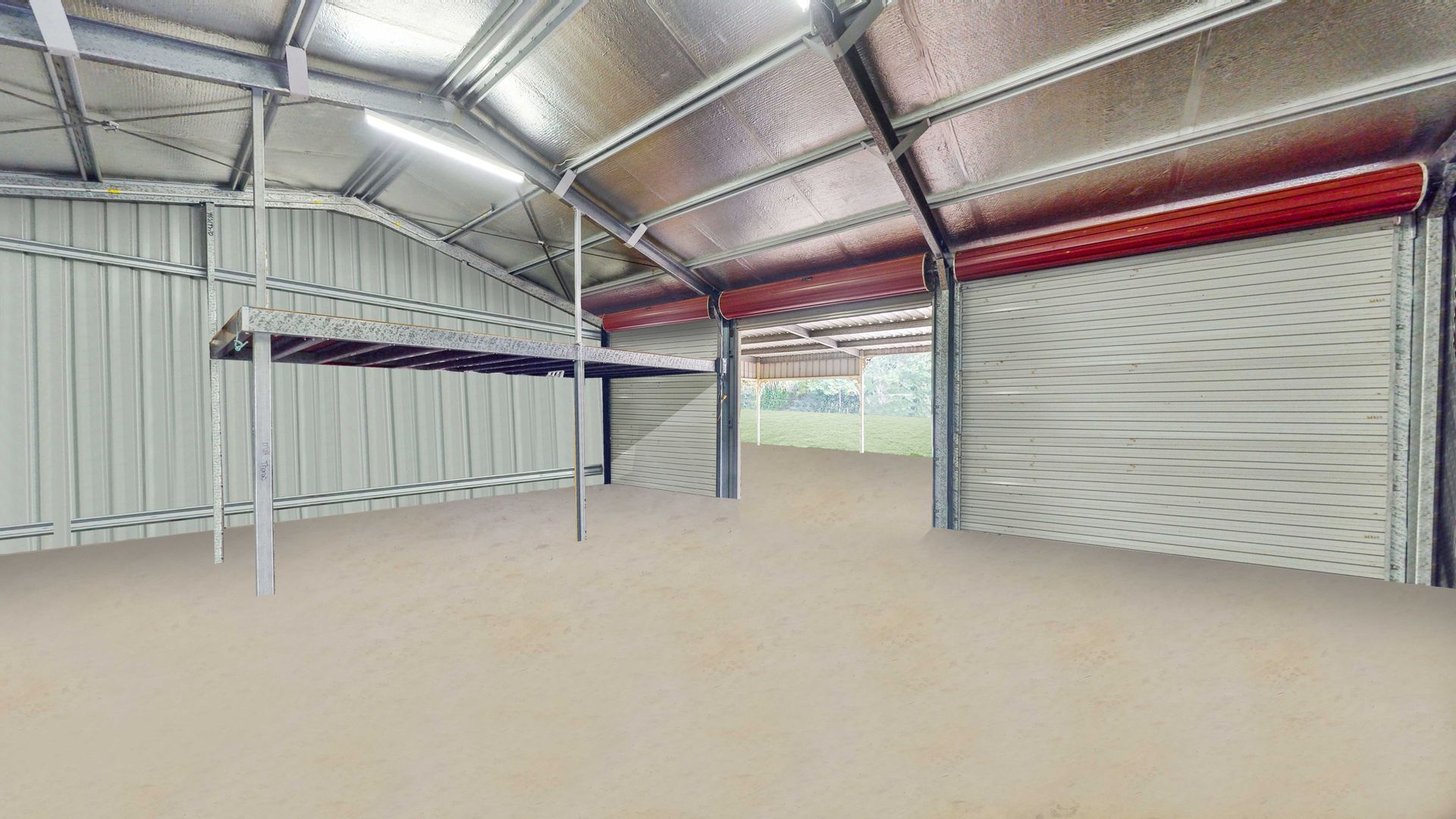 - Large triple bay BlueScope Steel Shed with Mezzanine level & toilet & shower.