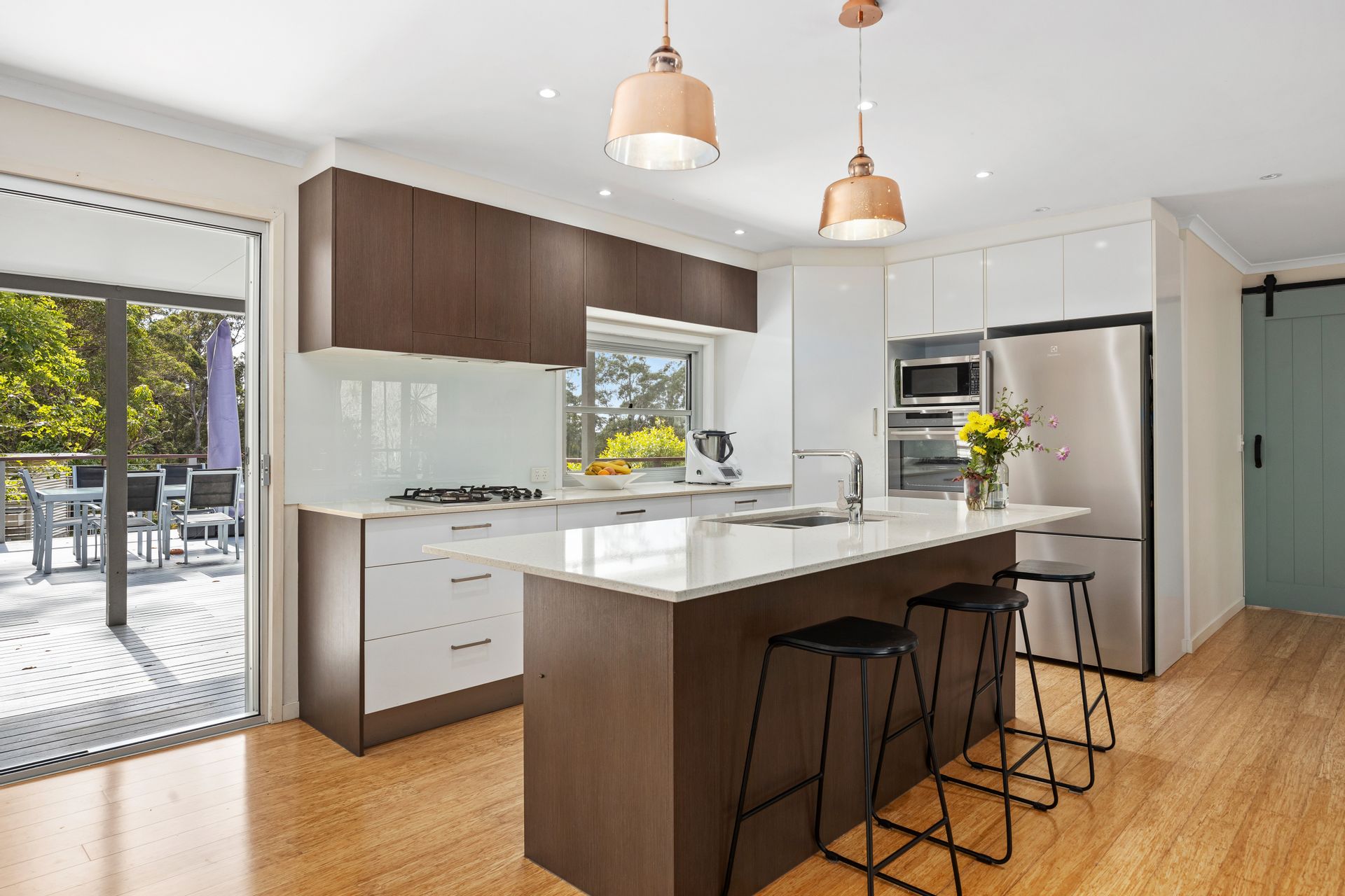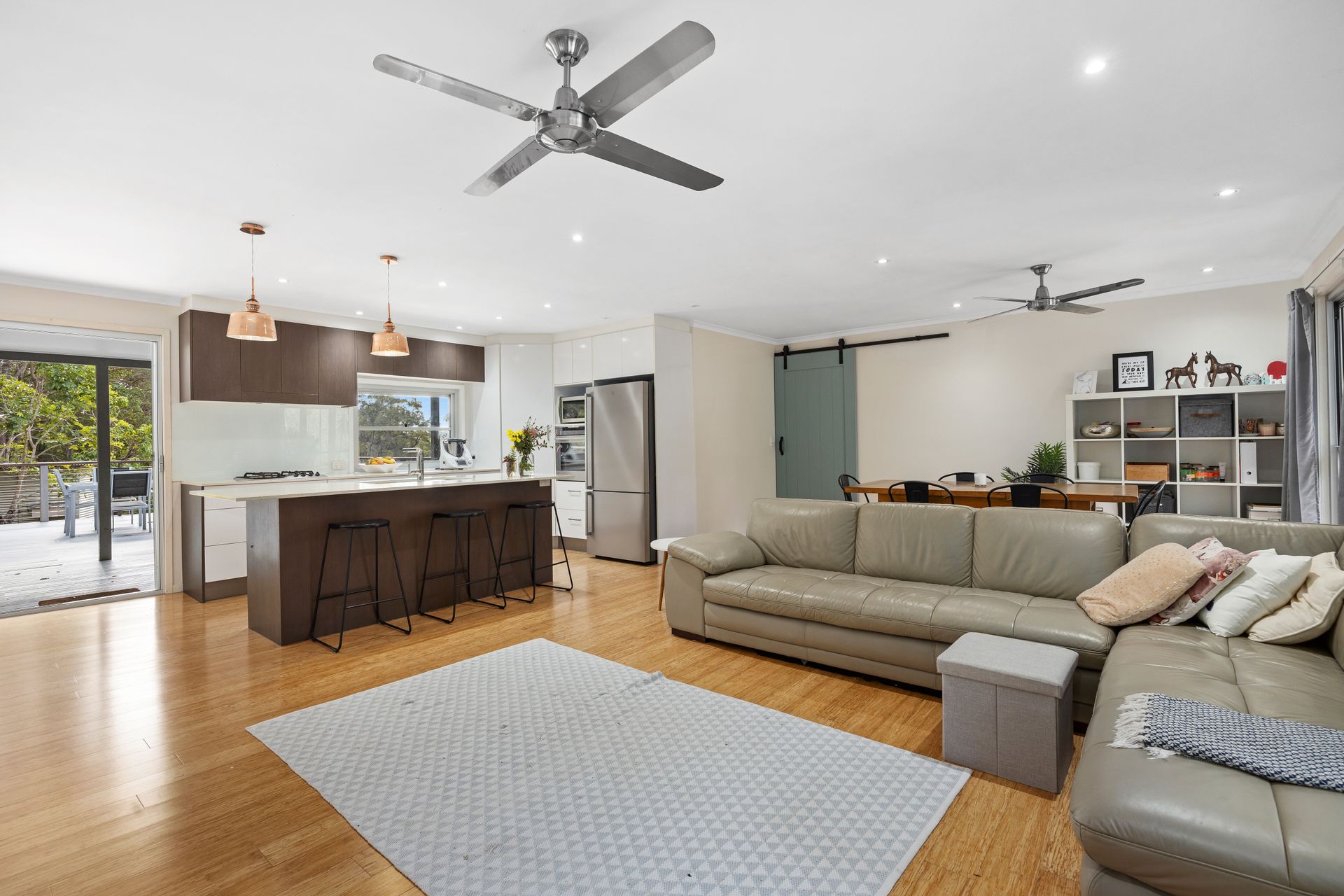 The spacious steel-framed family home boasts high ceilings, 4 large bedrooms all equipped with built-in wardrobes and ceiling fans, 2 bathrooms, and the master suite with his and hers walk-in-robes, an ensuite, and outdoor veranda access. The centrally located living area is complete with air-conditioning, ceiling fans, bamboo floors and is full of natural light with access to the full-length veranda and huge entertainment deck. The heart of the home is the kitchen with gas cooking, a dishwasher, island bench, and an abundance of storage.