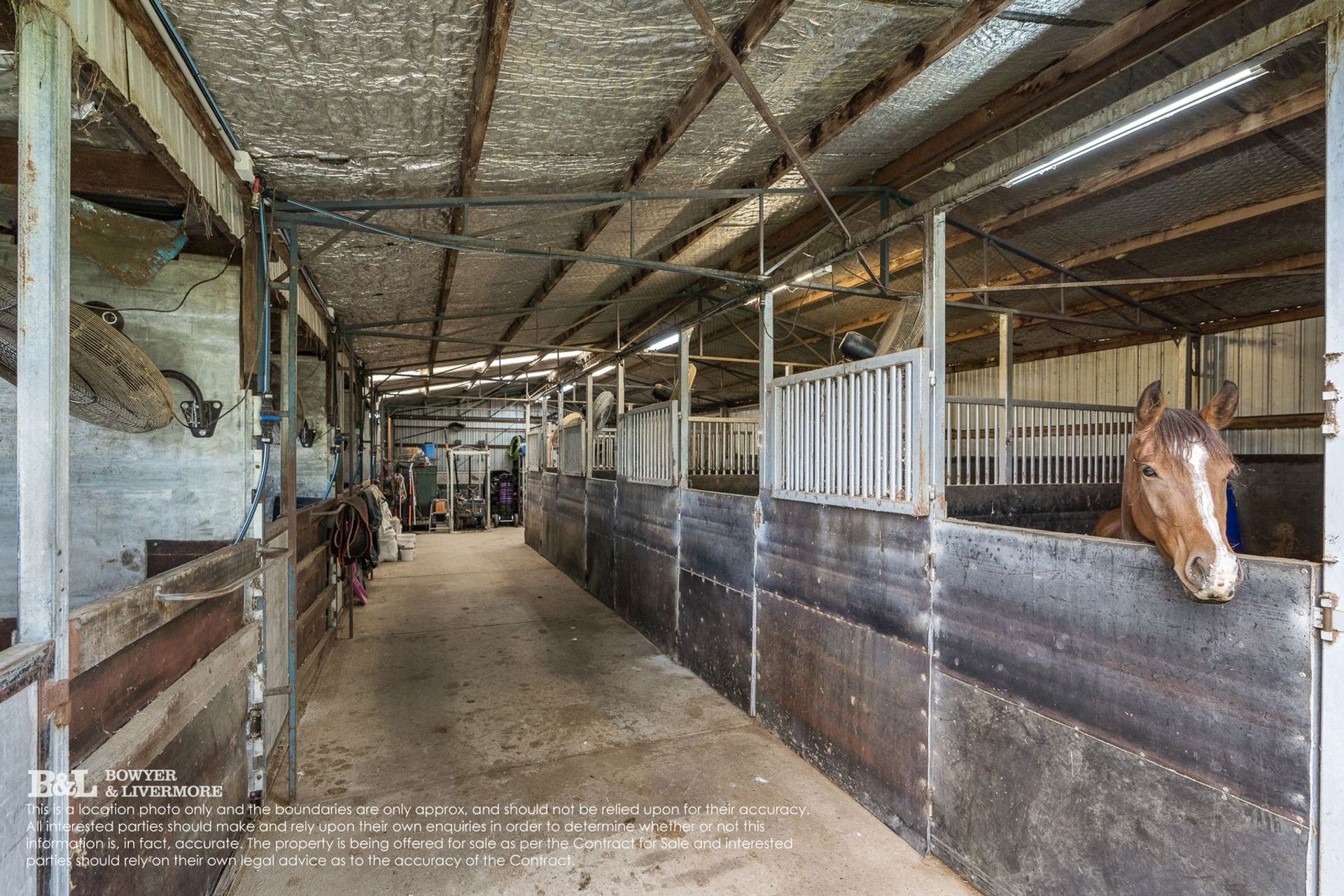 - Stable complex with 9 rubber lined boxes (power to each box & 6 boxes with fans), plus tack & feed room (13m x 17m)*