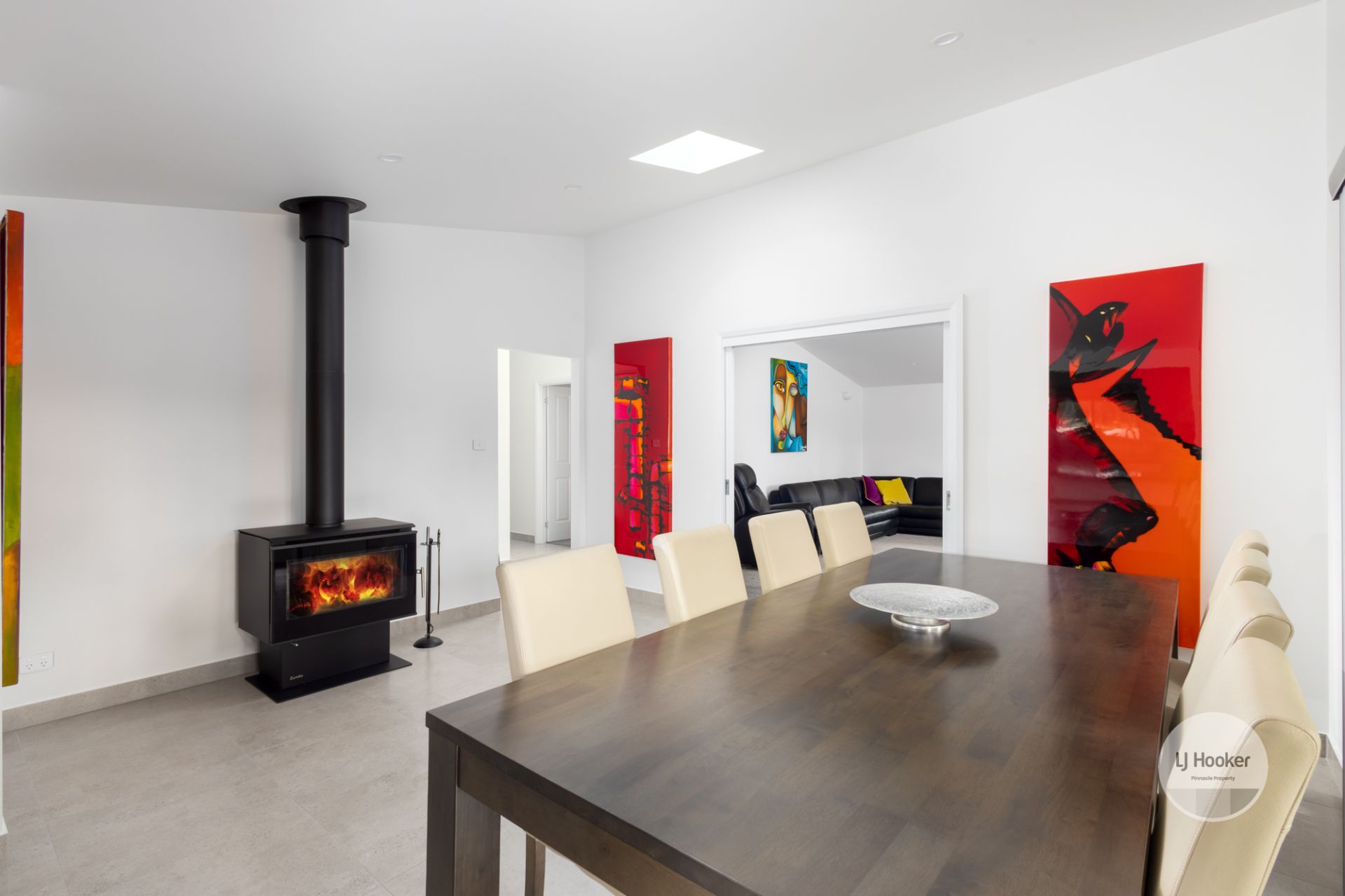In the kitchen, you will find an immense amount of storage, stone benchtops and a walk-in pantry. The kitchen has stainless steel appliances and flows through into the dining space with a large wood heater to keep you nice and toasty warm during those cooler months. From the dining space you enter the substantial living area boasting large windows, that soak the space with plenty of natural light and stunning and private views that are actually in-fact your backyard.