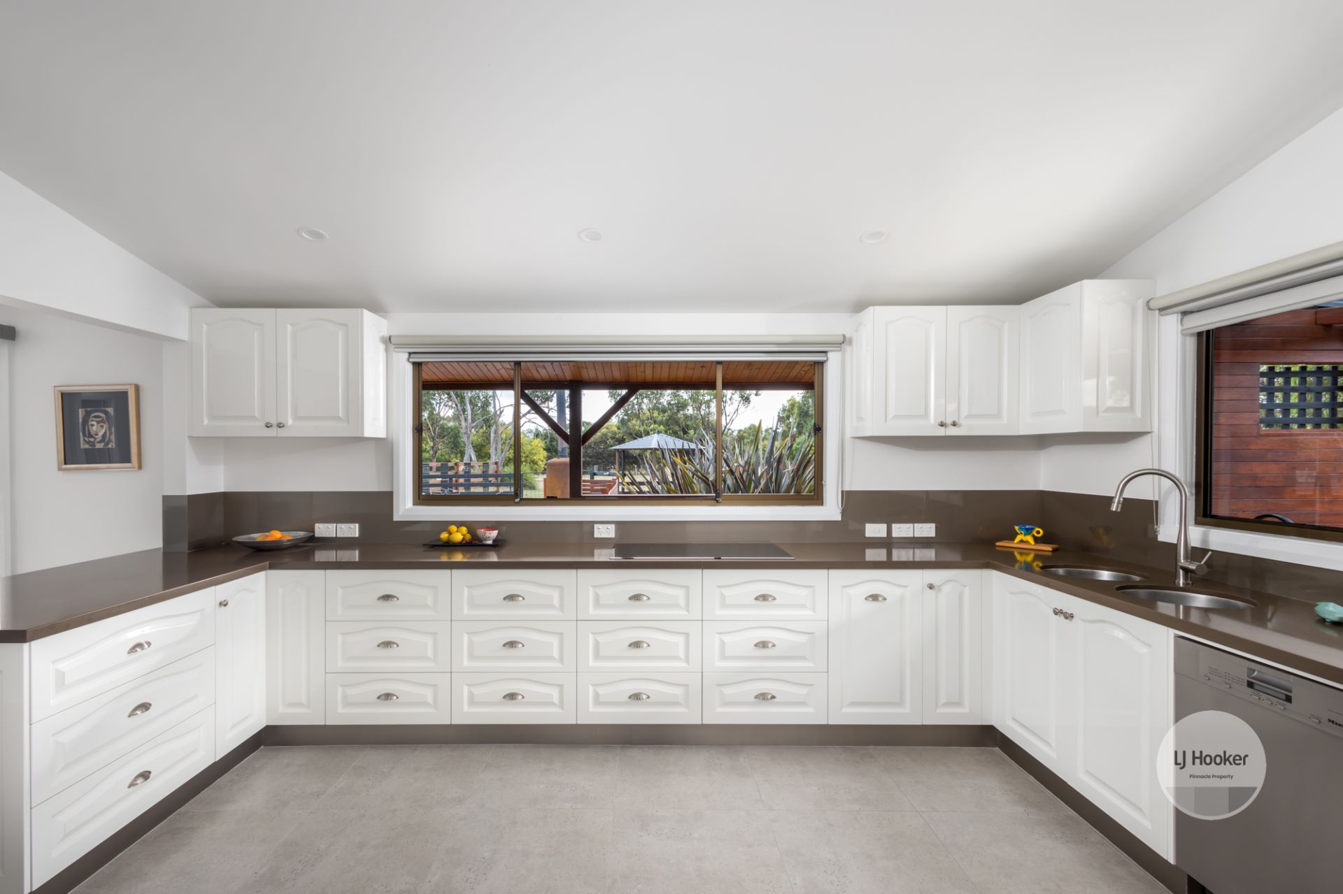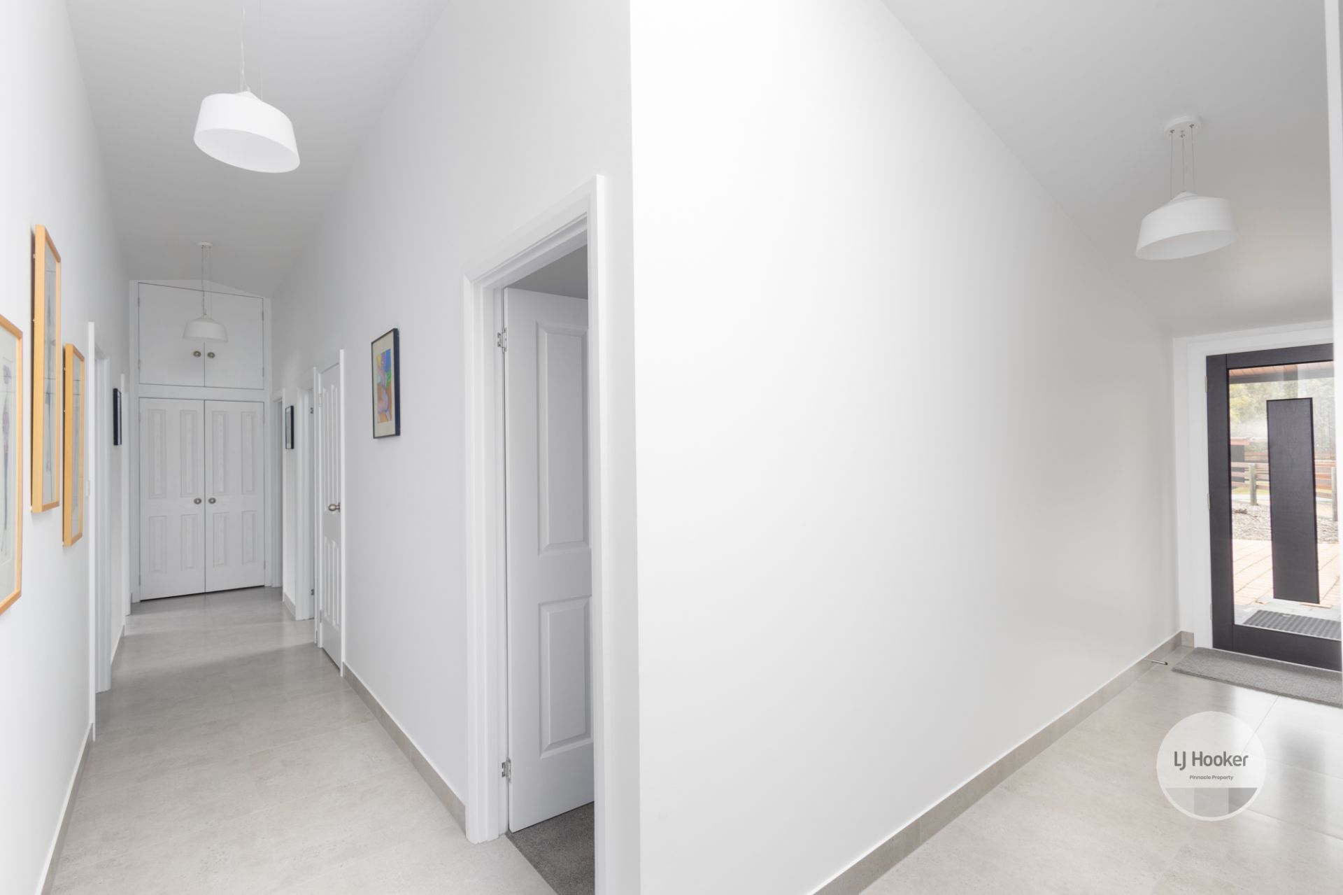 The home features high ceilings and large windows throughout to allow plenty of natural light and picturesque views well beyond the glass. Four large bedrooms, two with built-ins and two with full walk-in-robes, and the added bonus of a heat pump in both of these bedrooms. The ensuite and main bathroom have a luxurious feel with high-end finishes and skylights to allow plenty of natural light to pour in.