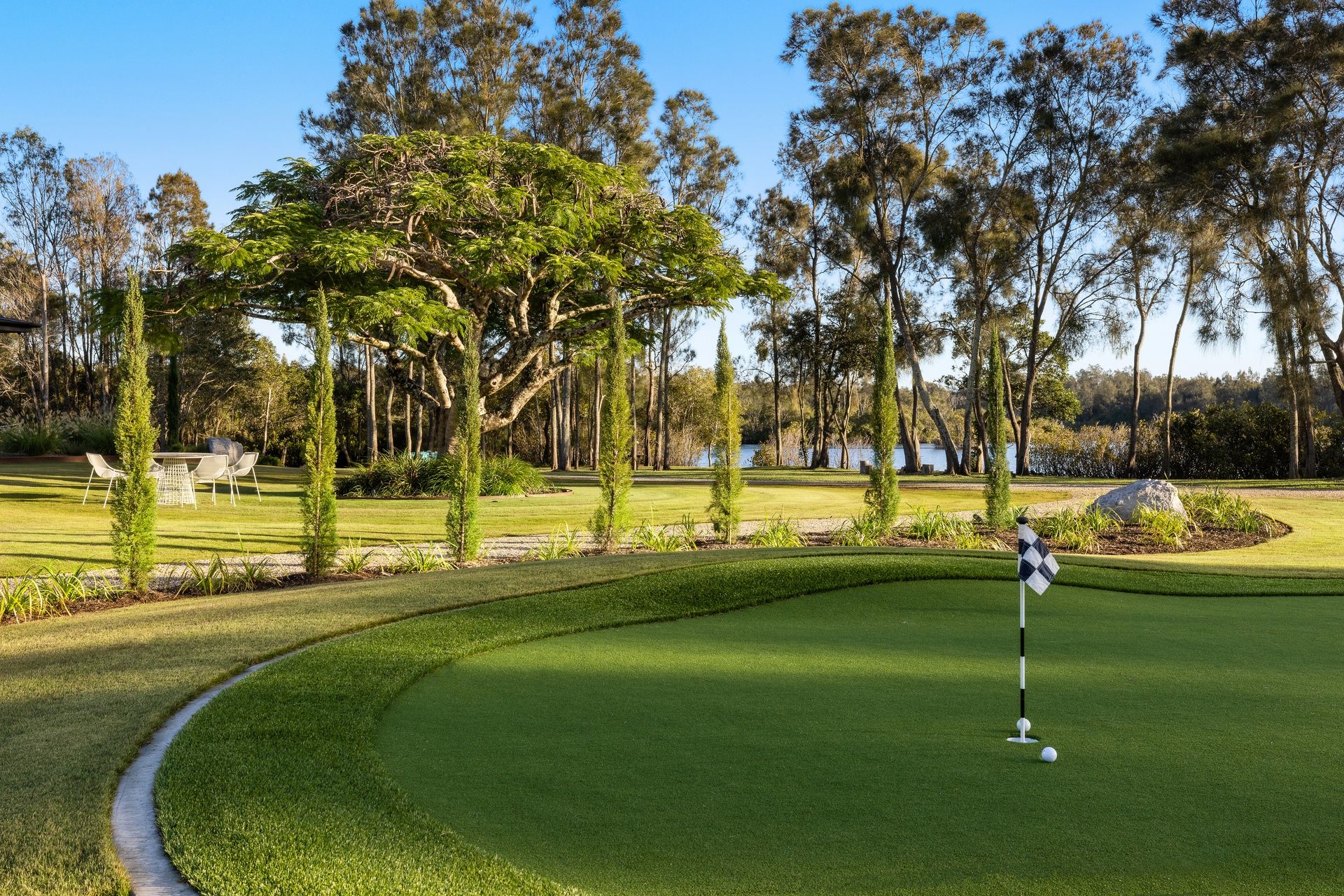 Professional 2 hole golf course with practice putting green