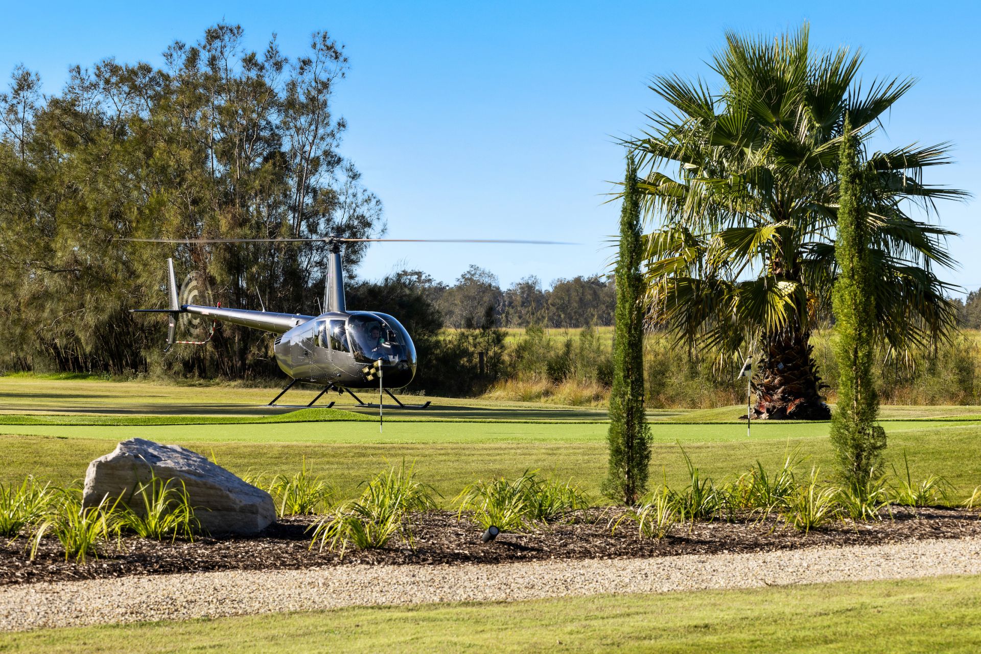 30 minutes via helicopter (approx)