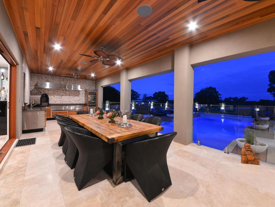 The kitchen, family room, and an enormous games room, all open out to outstanding outdoor entertaining - the cedar lined alfresco surrounds the pool and offers travertine flooring, separate lounging & dining areas, and an ultimate outdoor kitchen with integrated beer & wine fridges, stainless bbq & range hood, pizza oven & oodles of storage – this is resort living at its very best.