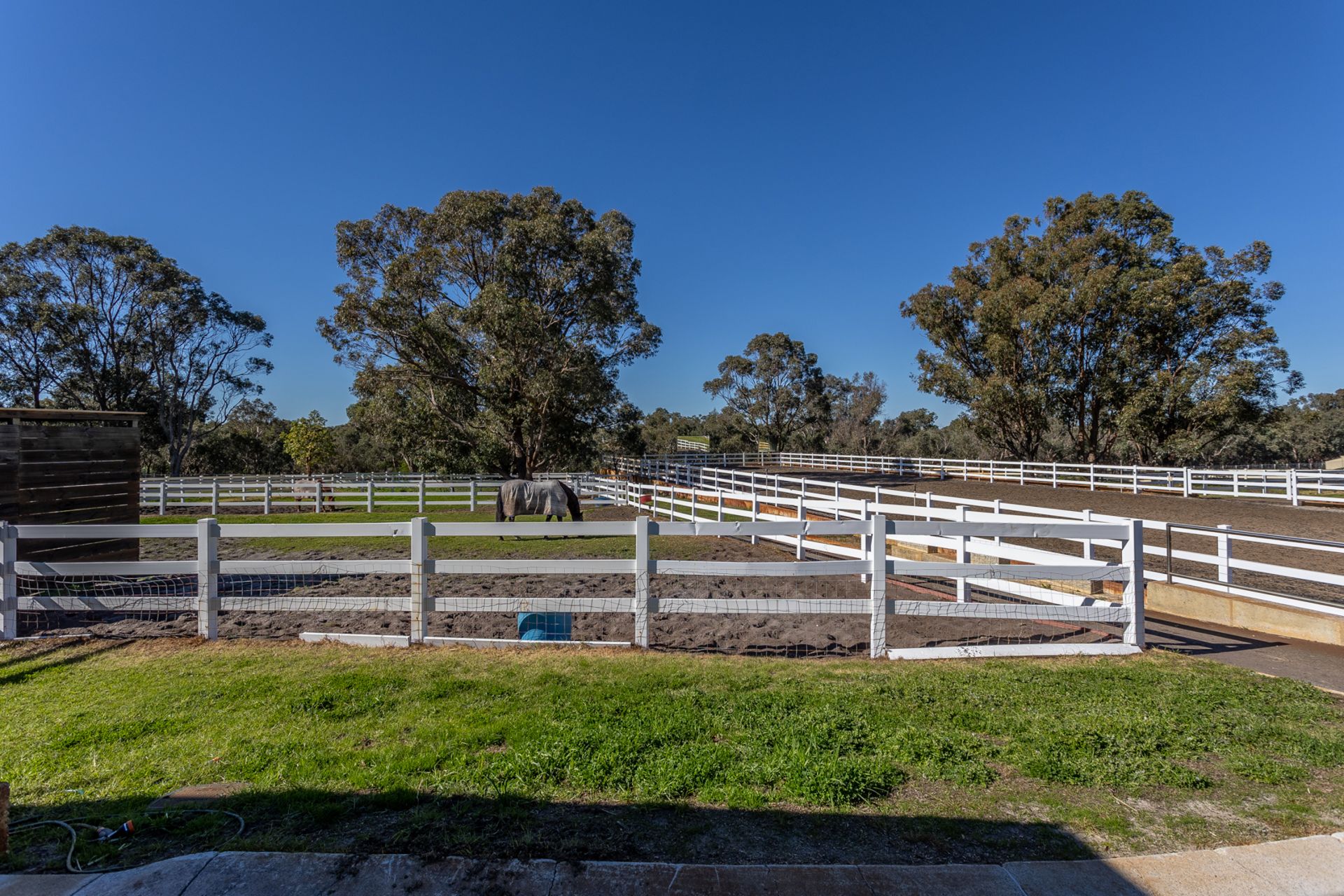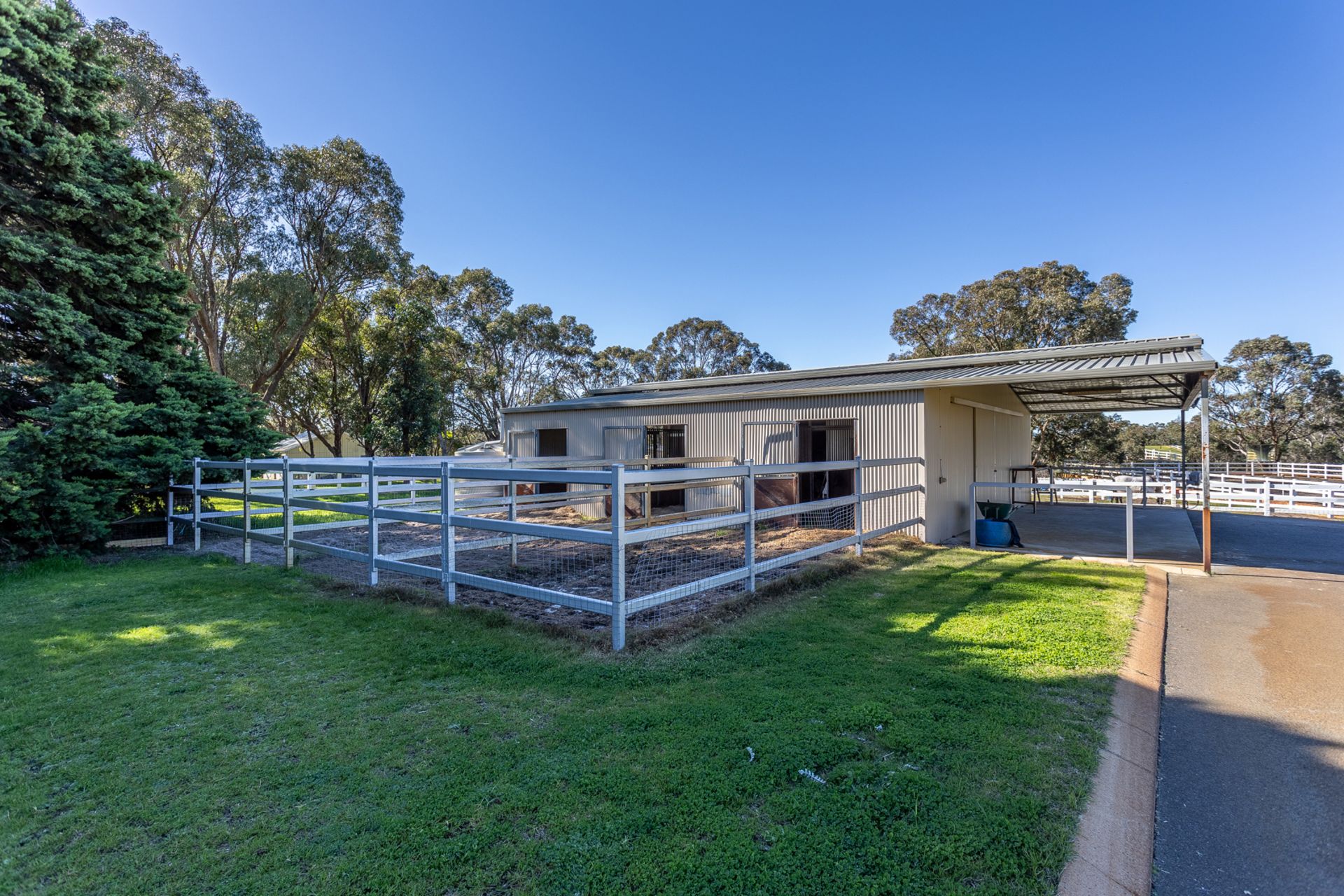 The spectacular grounds offer beautifully landscaped & reticulated gardens watered from your own bore, first class stable facilities, a full-size competition dressage arena, seven paddocks with capacity for more, fully sealed roads with full drive around access, plenty of space for the kids & pets to play, with room for additional workshops, granny flats, or other outbuildings.