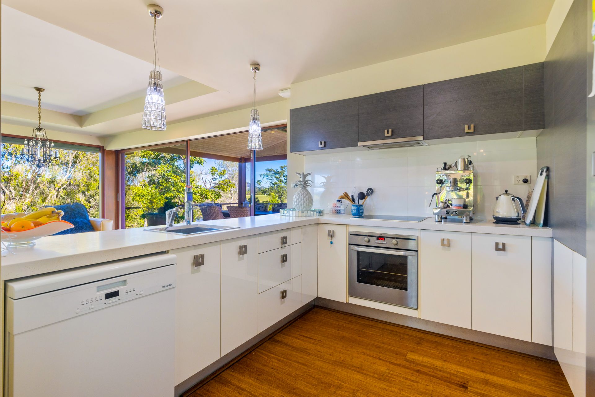 • Kitchen with stone benchtops and a Miele dishwasher