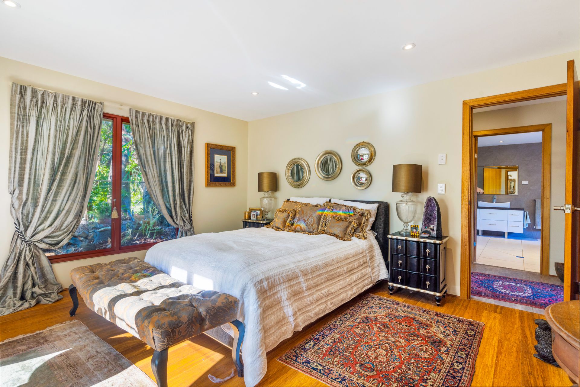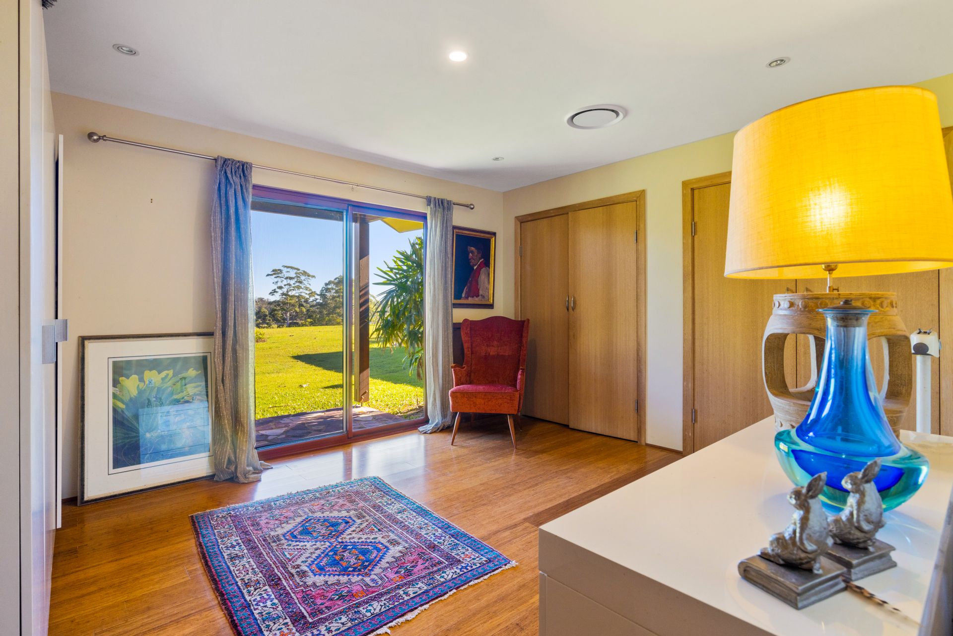 Accommodating a variety of family configurations, the house features three bedrooms, a family bathroom and a self-contained granny flat opening to a private courtyard. The three main bedrooms all delight in beautiful vistas, and the luxurious family bathroom boasts a spa bath soaking in the captivating scenery.