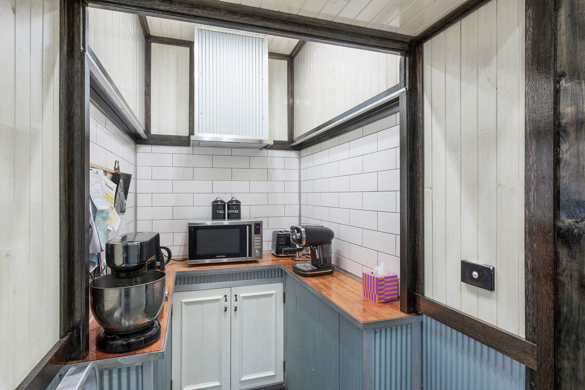 Including a woodfire, a bathroom, a toilet, laundry, and a kitchenette (all fully self-contained) and it has a workshop area, completely your choice on how you would like to use this space.