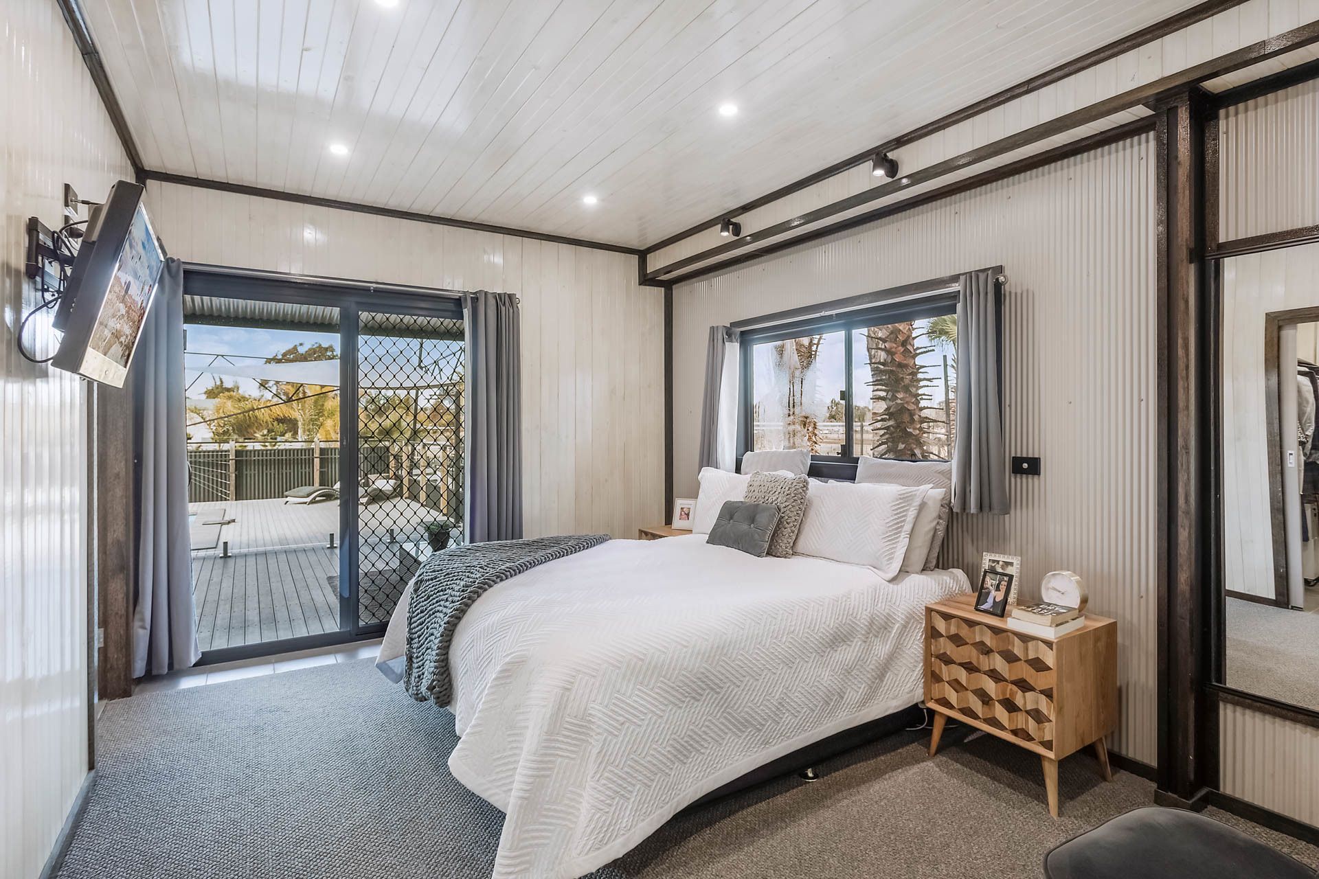 The two additional bedrooms have built-in robes, and ALL of the bedrooms have accessibility to the outside undercover decks. There is a two-way bathroom (with European-style laundry) and a separate toilet.
