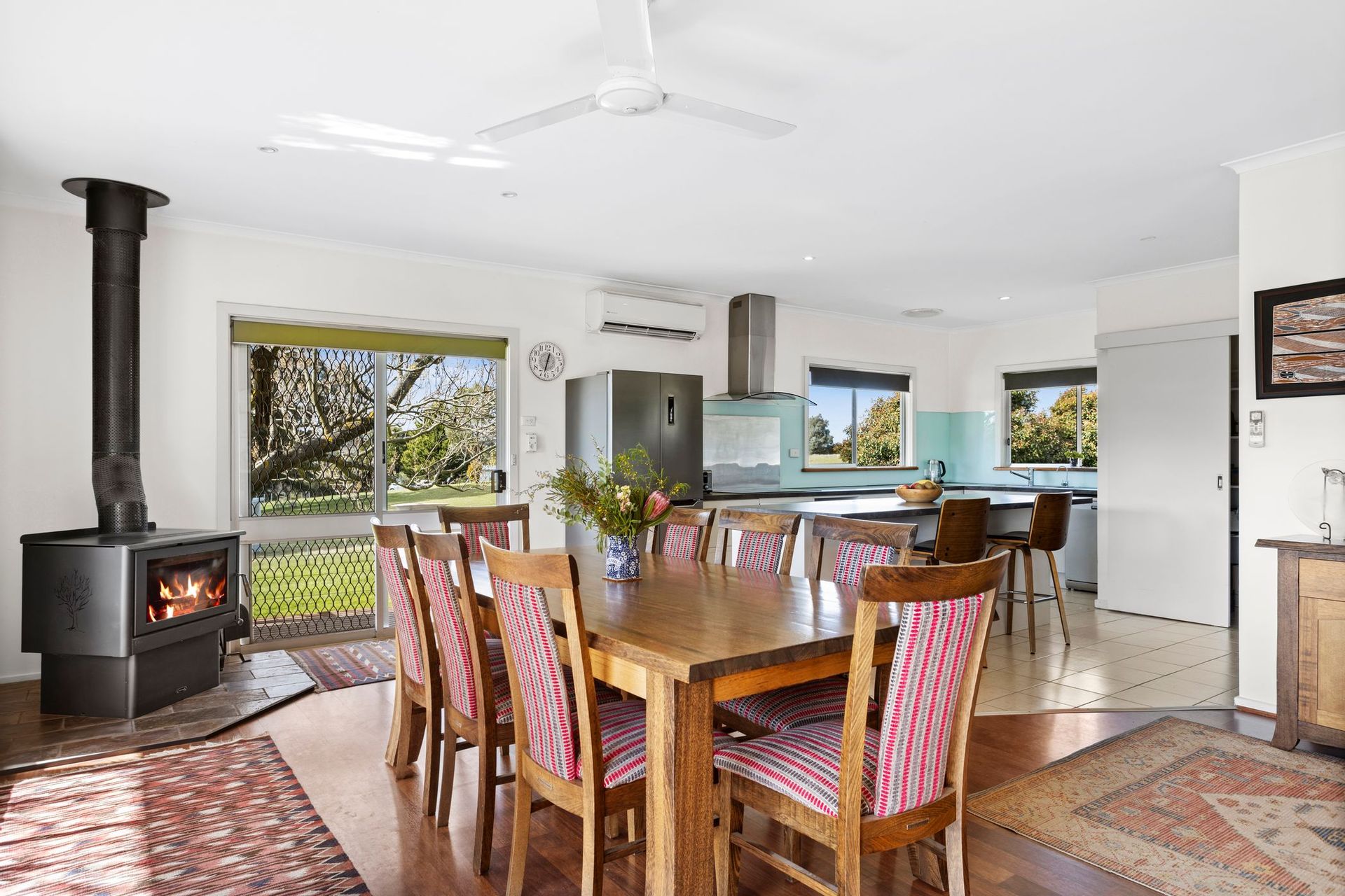 In addition to the ensuite, the master bedroom features a WIR. A central wood heater brings more country charm while split system heating and cooling and ceiling fans throughout offer easy comfort. The eight-kilowatt solar system takes full advantage of the home's elevated sunny position and the current vendor has not had to pay an electricity bill since its installation six months ago!