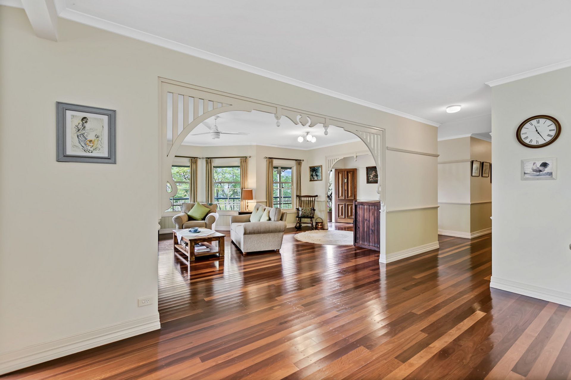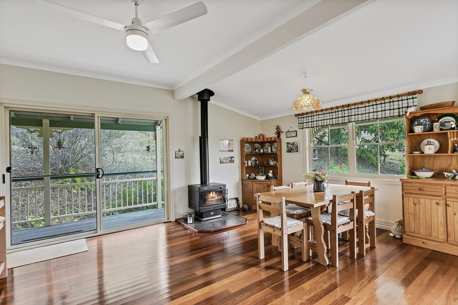 A fabulous Garth Chapman Queenslander built in 2004 is set high on the property with views to Mt Eerwah and surrounds. Wrap around verandahs offer plenty of spaces to enjoy the winter sun or shade in summer. Beautiful leadlights surround the front door as you enter into the spacious open plan living area with hardwood timber floors, 9' ceilings and wrap around windows. There's a wood heater in the family dining area for those chilly evenings and the large kitchen area has lots of storage and pantry space. All three bedrooms are extra large with bedroom two currently used as an office with fabulous wrap around windows and views. The main bedroom has a sitting area, walk in robe and access to the bathroom. Underneath the house has room to park 6 cars or potential to build in for more living space and bedrooms if needed.