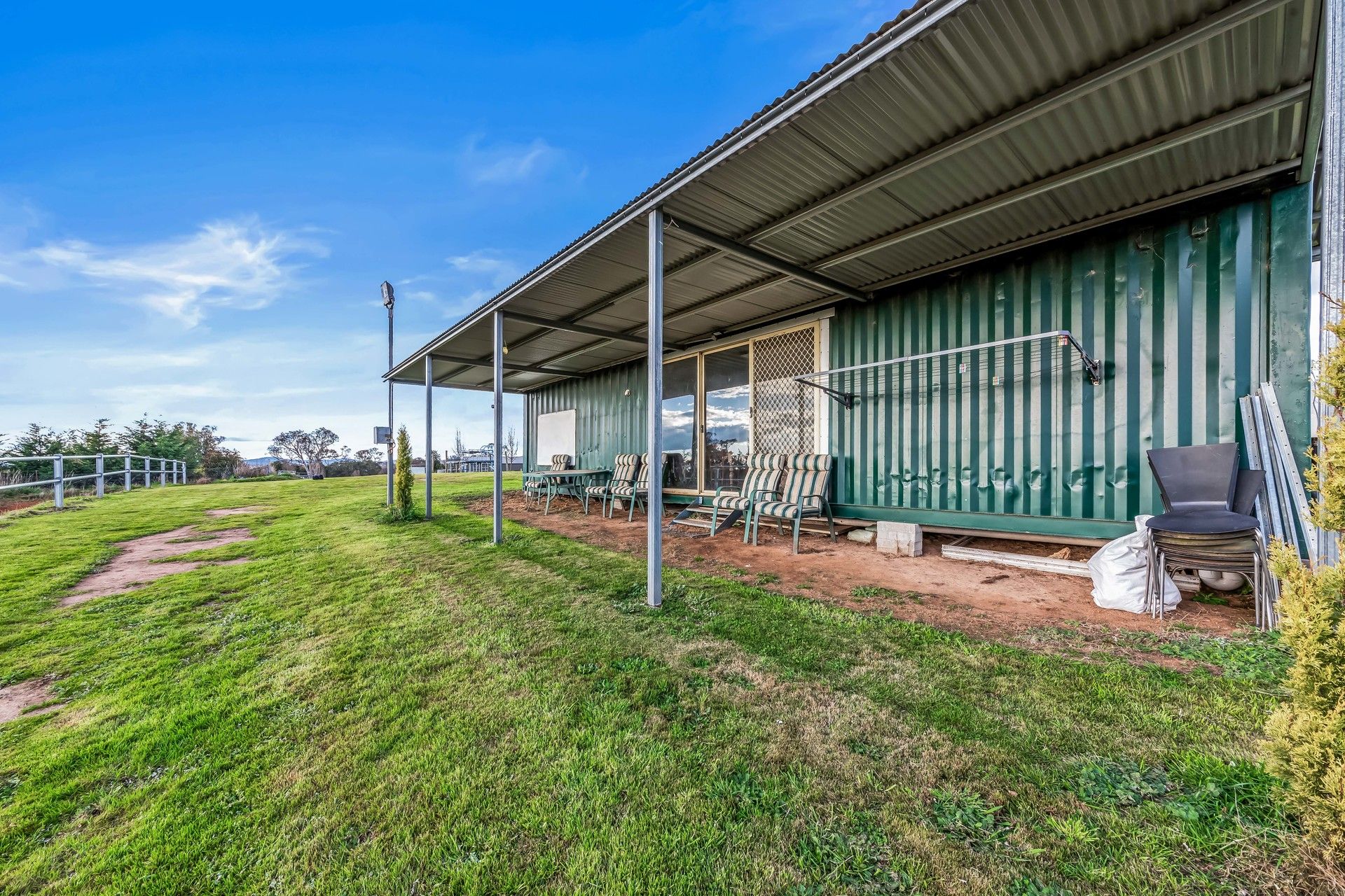 •Converted container club house with covered view verandah, shower/washroom, clothes line, hay storage